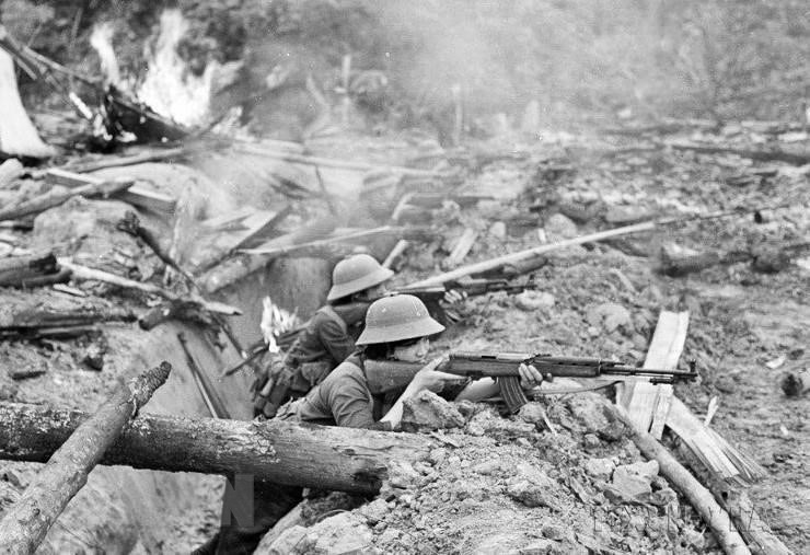 Các nữ chiến sĩ tự vệ Lâm trường Bản Phiệt, huyện Mường Khương, tỉnh Hoàng Liên Sơn (nay thuộc tỉnh Lào Cai) bám trụ chiến đấu, phối hợp bộ đội địa phương đánh lui nhiều đợt tấn công của địch. (Ảnh: Nguyễn Trân/TTXVN)