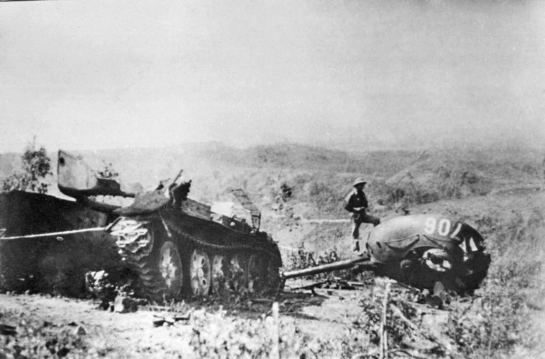 Xe tăng địch bị quân và dân Cao Bằng tiêu diệt tại mặt trận đồi Thanh Sơn, khu vực Nà Toàng, ngày 19/2/1979. (Ảnh: Mạnh Thường/TTXVN phát)