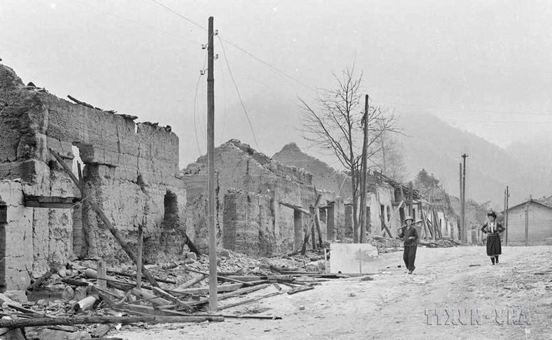 Thị trấn Trà Lĩnh, tỉnh Cao Bằng bị địch phá hủy. (Ảnh: Sĩ Châu/TTXVN)