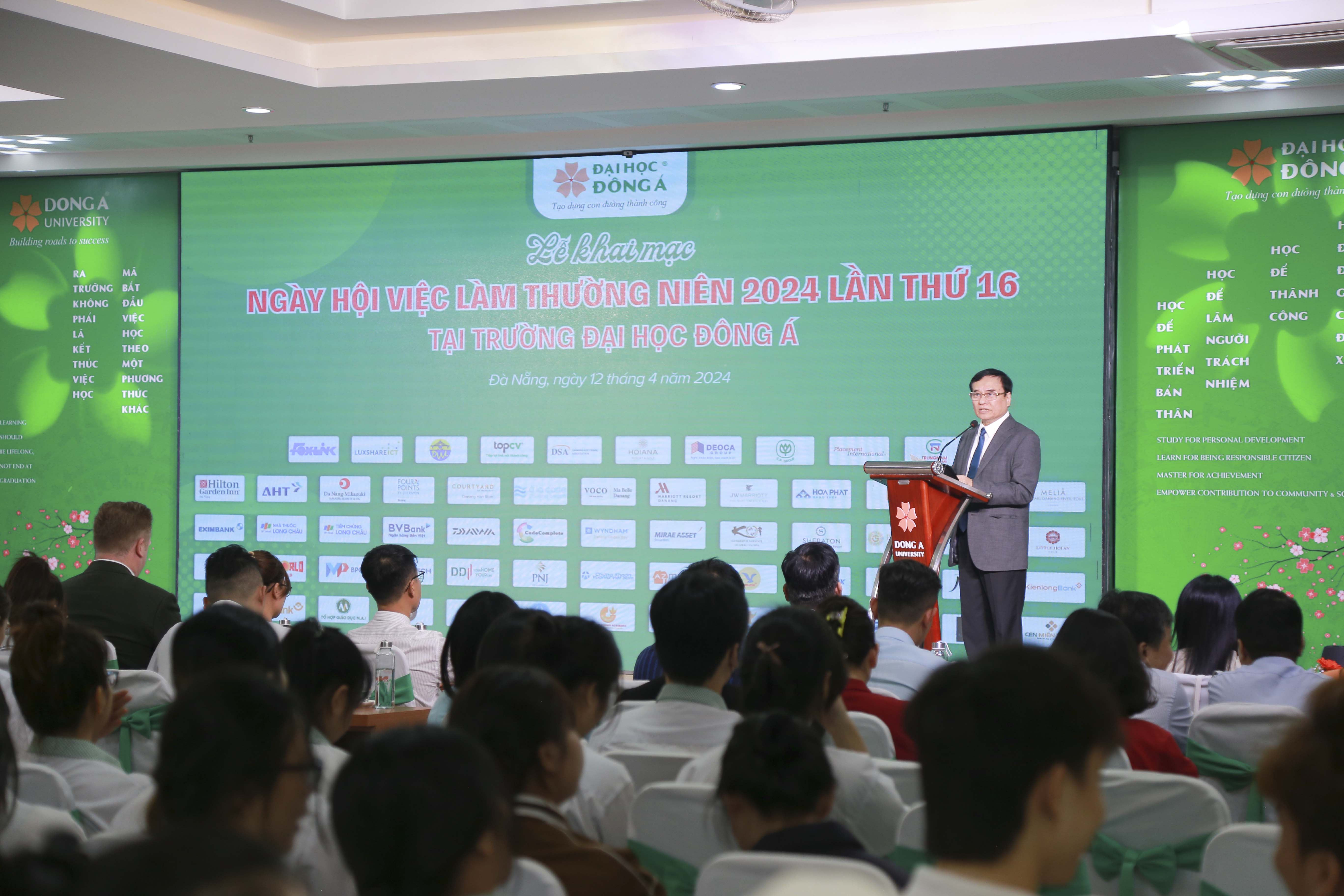 Phát biểu tại phiên khai mạc, ông Nguyễn Đăng Hoàng – Giám đốc Sở LĐ-TB&XH TP. Đà Nẵng đánh giá cao việc tổ chức Ngày hội việc làm năm 2024 của Trường Đại học Đông Á cùng sự tham gia tích cực của các doanh nghiệp đã góp phần thực hiện tốt chương trình “5 không”, “3 có” của thành phố, trong đó đặc biệt là chương trình “Có việc làm” và thực hiện các chỉ tiêu giải quyết việc làm trong năm 2024 của thành phố.