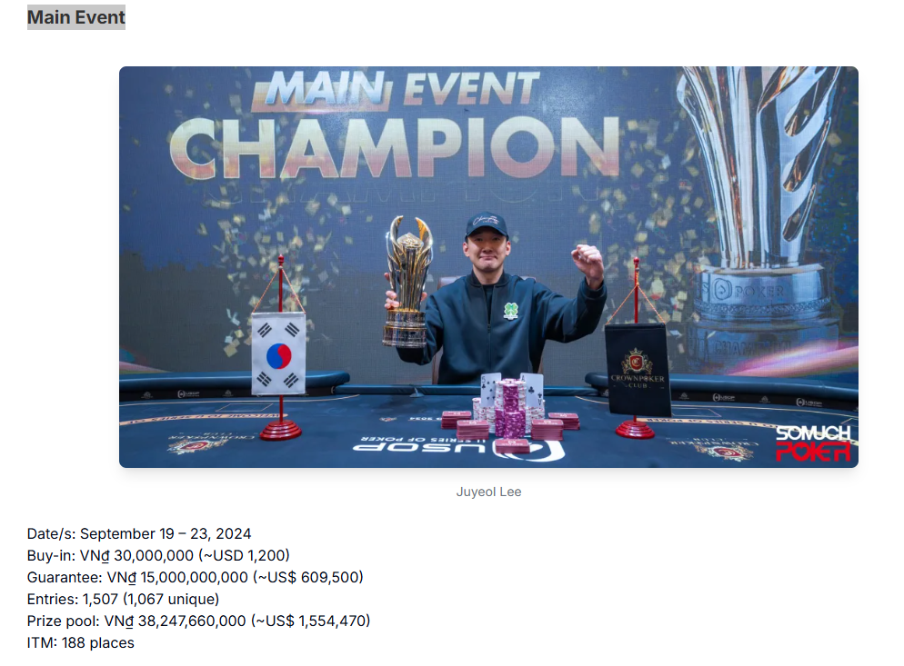 Theo các con số được báo chí châu Á đưa ra, thì tổng giải thưởng của sự kiện lần 1 tại Đồ Sơn lên tới hơn 160 tỷ trả thưởng cho các người chơi.