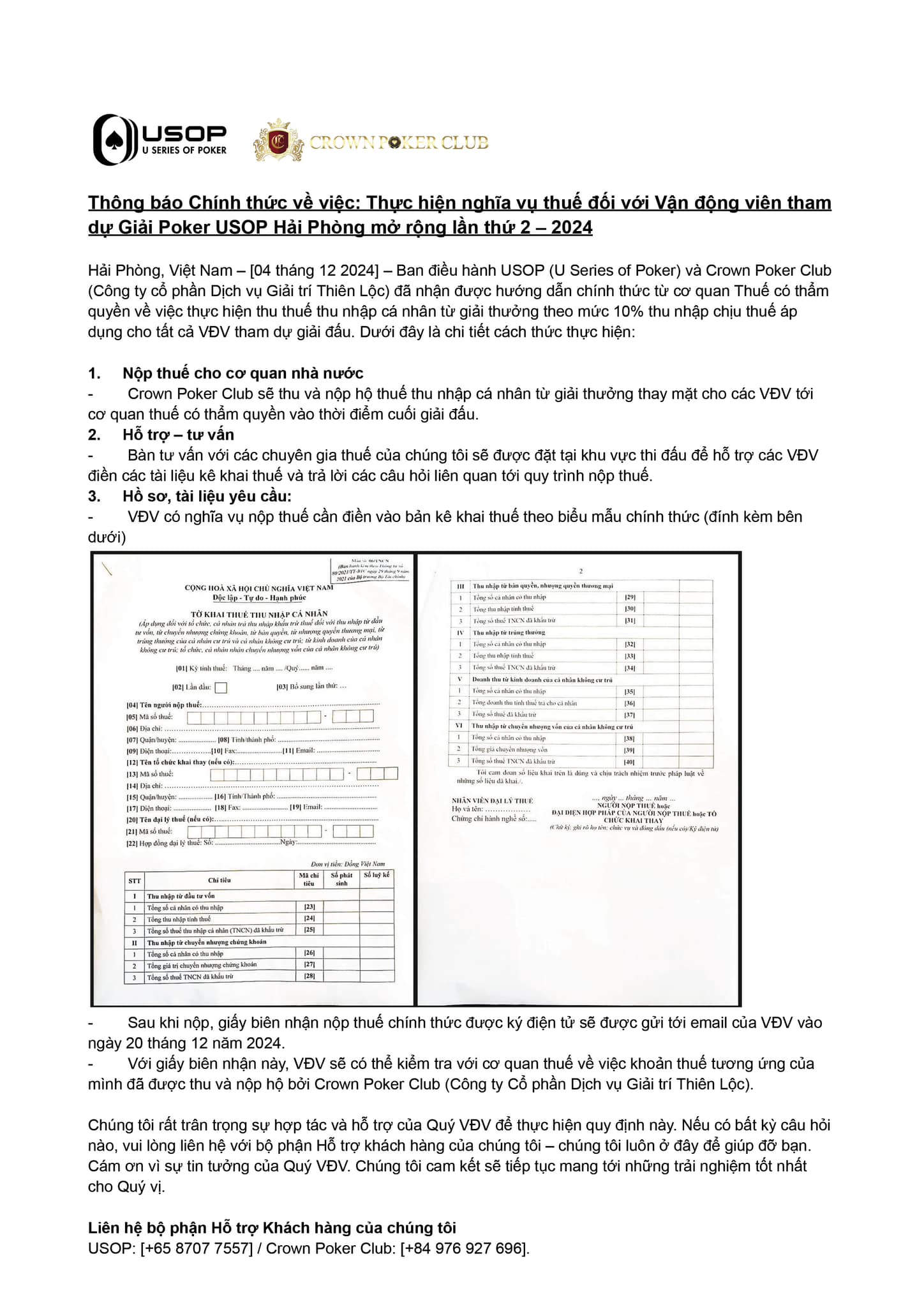 Hướng dẫn nộp thuế của Ban tổ chức bắt đầu từ ngày 5/12