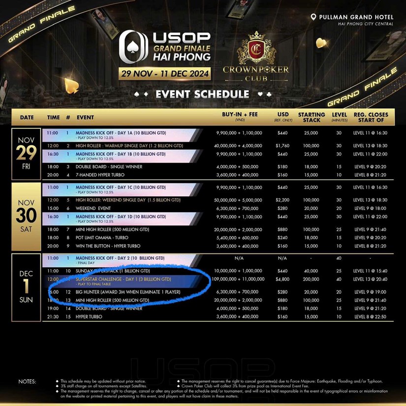 Con số BTC USOP Hải Phòng lần này đưa ra là 100 tỷ. Nhưng với diễn biến các ngày đã diễn ra tại khách sạn Pullman vừa qua con số tổng giải thưởng sẽ vượt 200 tỷ. Theo tôi tìm hiểu thì đây là con số cam kết trả thưởng lớn nhất châu Á hiện nay. Do đó sự kiện này quy tụ các người chơi khắp châu Á tới tham gia. Nhưng điều kỳ lạ là người Việt Nam lại dễ dàng tham gia và Nhà nước Việt Nam dường như lại đang không thu được đồng thuế nào từ sự kiện.