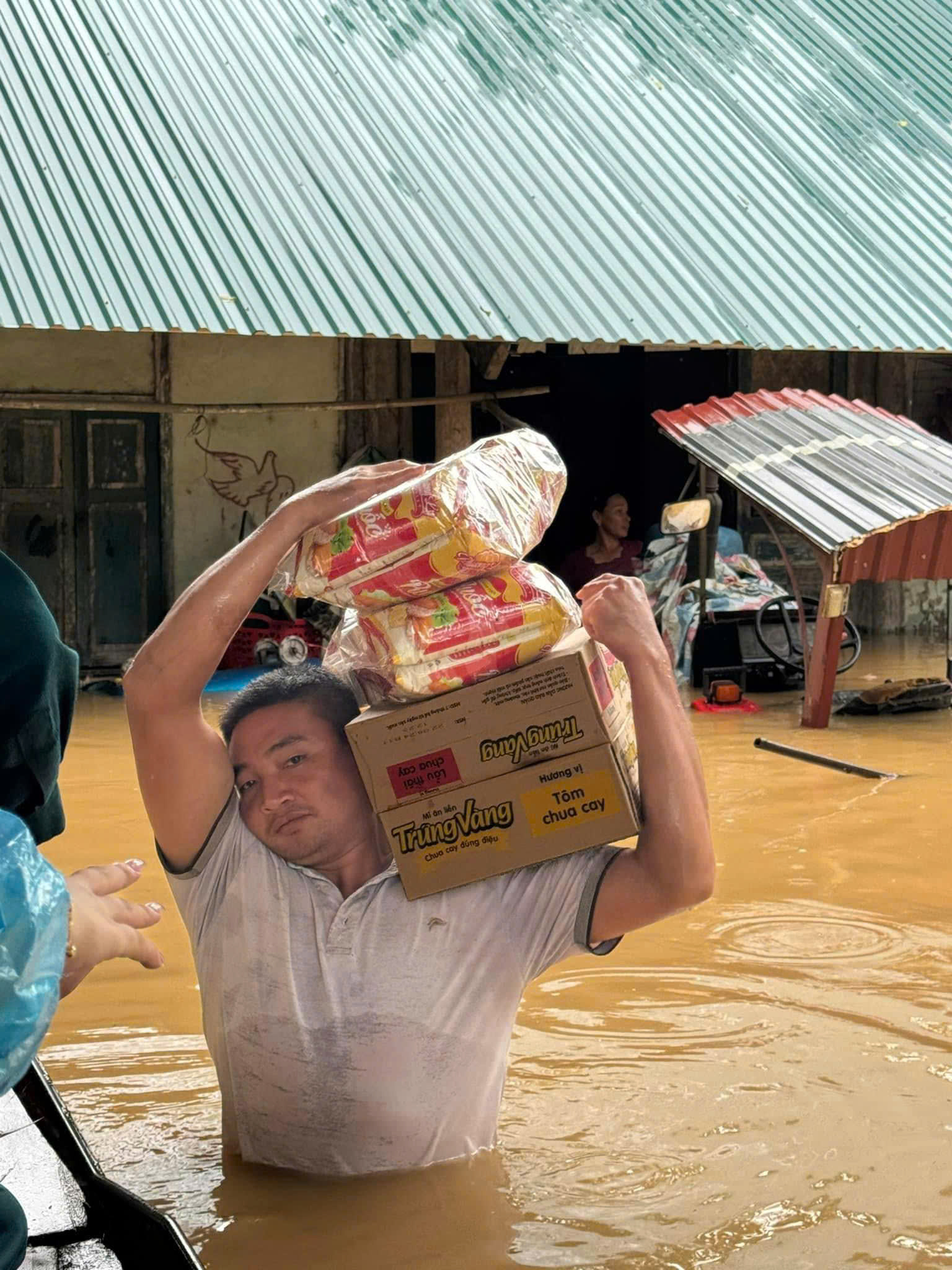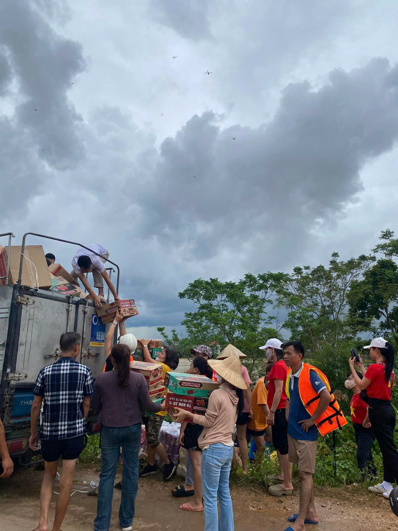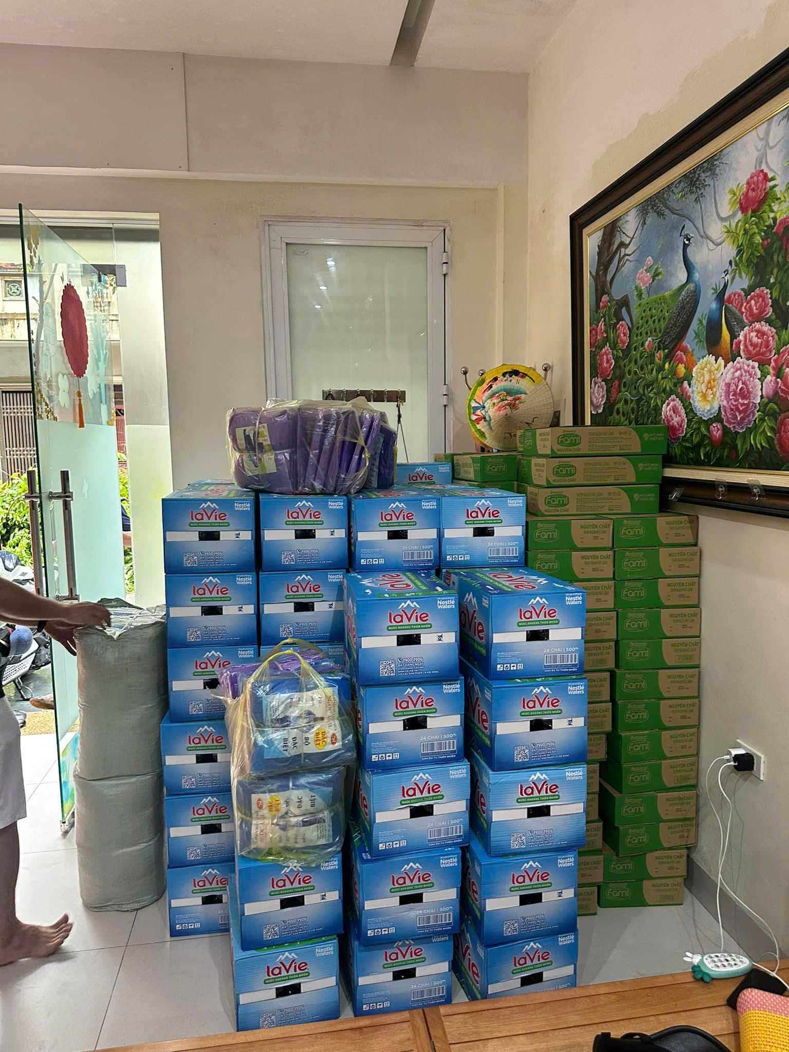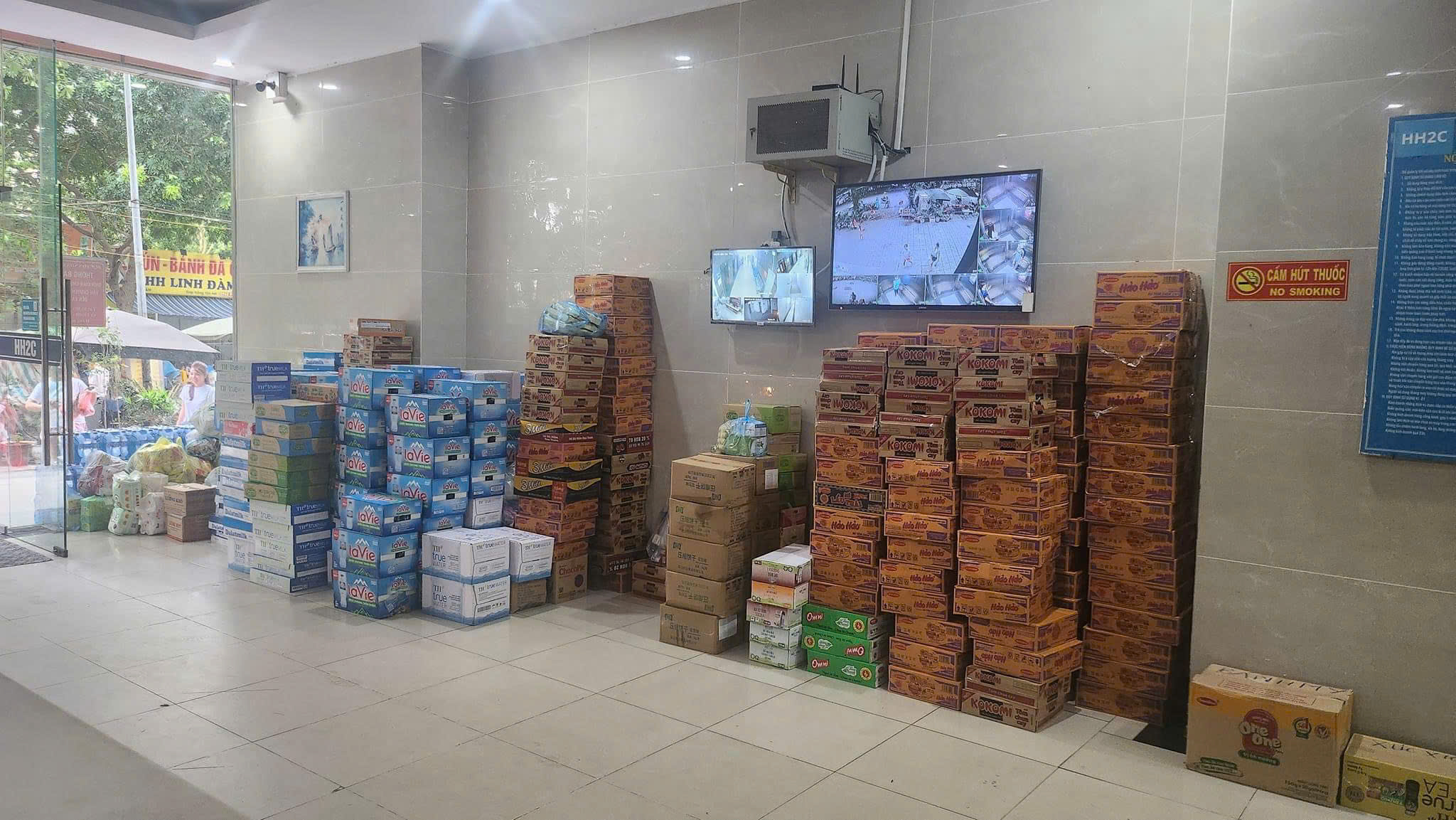 Mì tôm đủ các loại, nước , sữa,.. những sản phẩm vô cùng cần thiết giúp người dân chống chọi trước thiên tai