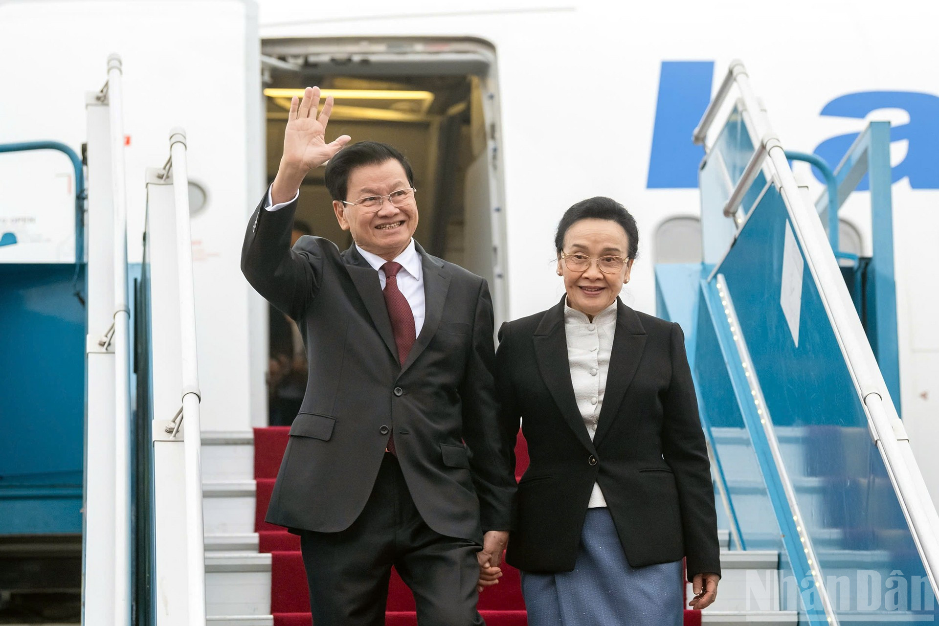 Tổng Bí thư Ban Chấp hành Trung ương Đảng Nhân dân cách mạng Lào, Chủ tịch nước Cộng hòa Dân chủ Nhân dân Lào Thongloun Sisoulith và Phu nhân đến sân bay quốc tế Nội Bài.