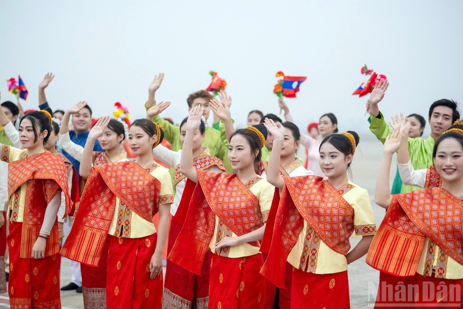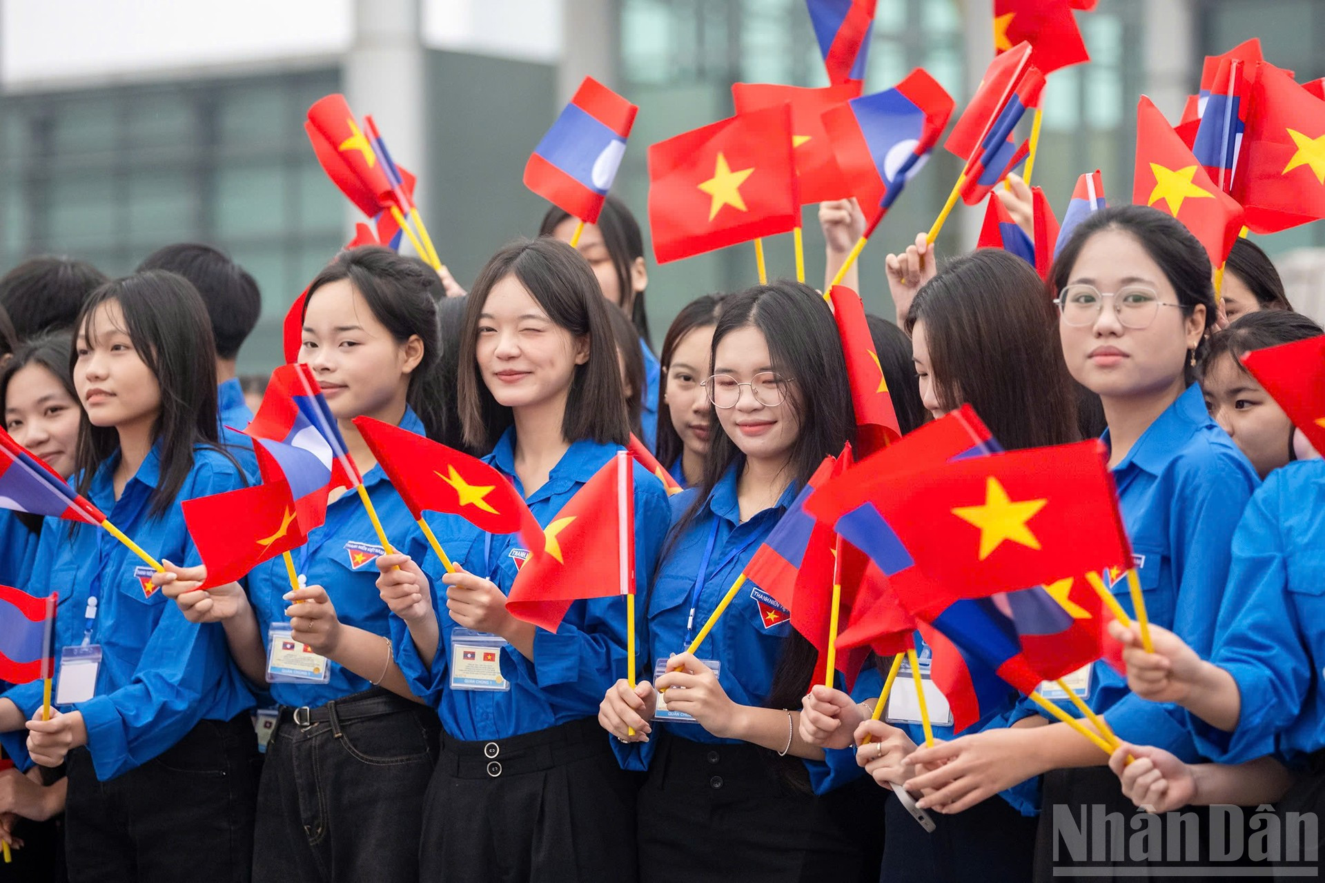 Thanh thiếu niên Việt Nam đón chào Tổng Bí thư Ban Chấp hành Trung ương Đảng Nhân dân cách mạng Lào, Chủ tịch nước Cộng hòa Dân chủ Nhân dân Lào Thongloun Sisoulith và Phu nhân.