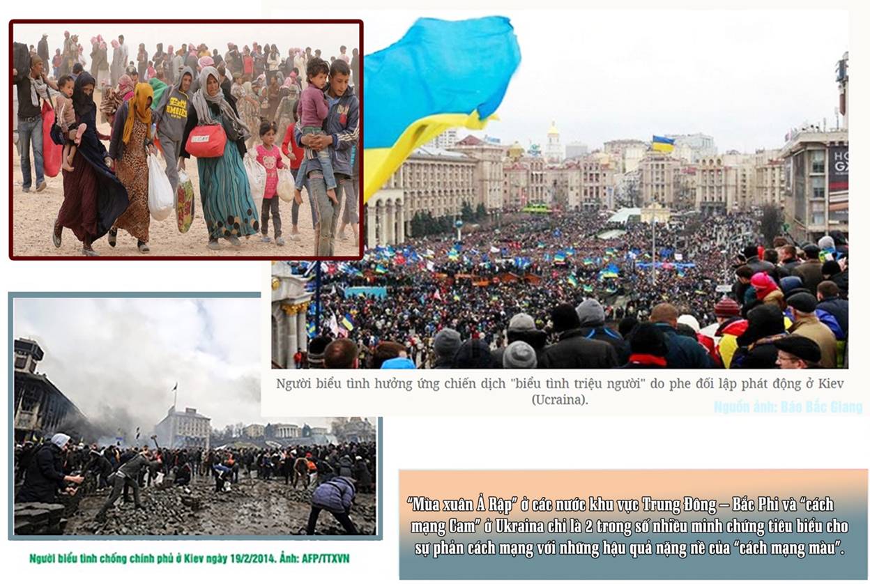 Nhìn lại lịch sử và thực tế đã minh chứng rõ nét nhất cho cái được gọi là “cách mạng màu” phải kể đến những “cơn giông bão chính trị” đã xảy ra ở khu vực Trung Đông - Bắc Phi, Ukraina hơn 1 thập kỷ trước.