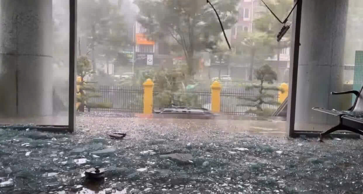 Sức gió mạnh xé toạc loạt cửa kính tại TP Hạ Long