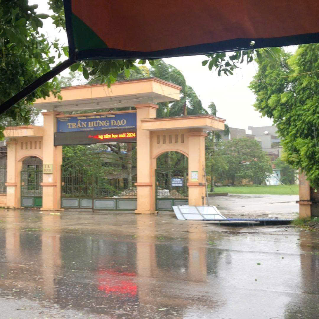 Gió thổi bay cổng một trường cấp 3 tại TP Nam Định