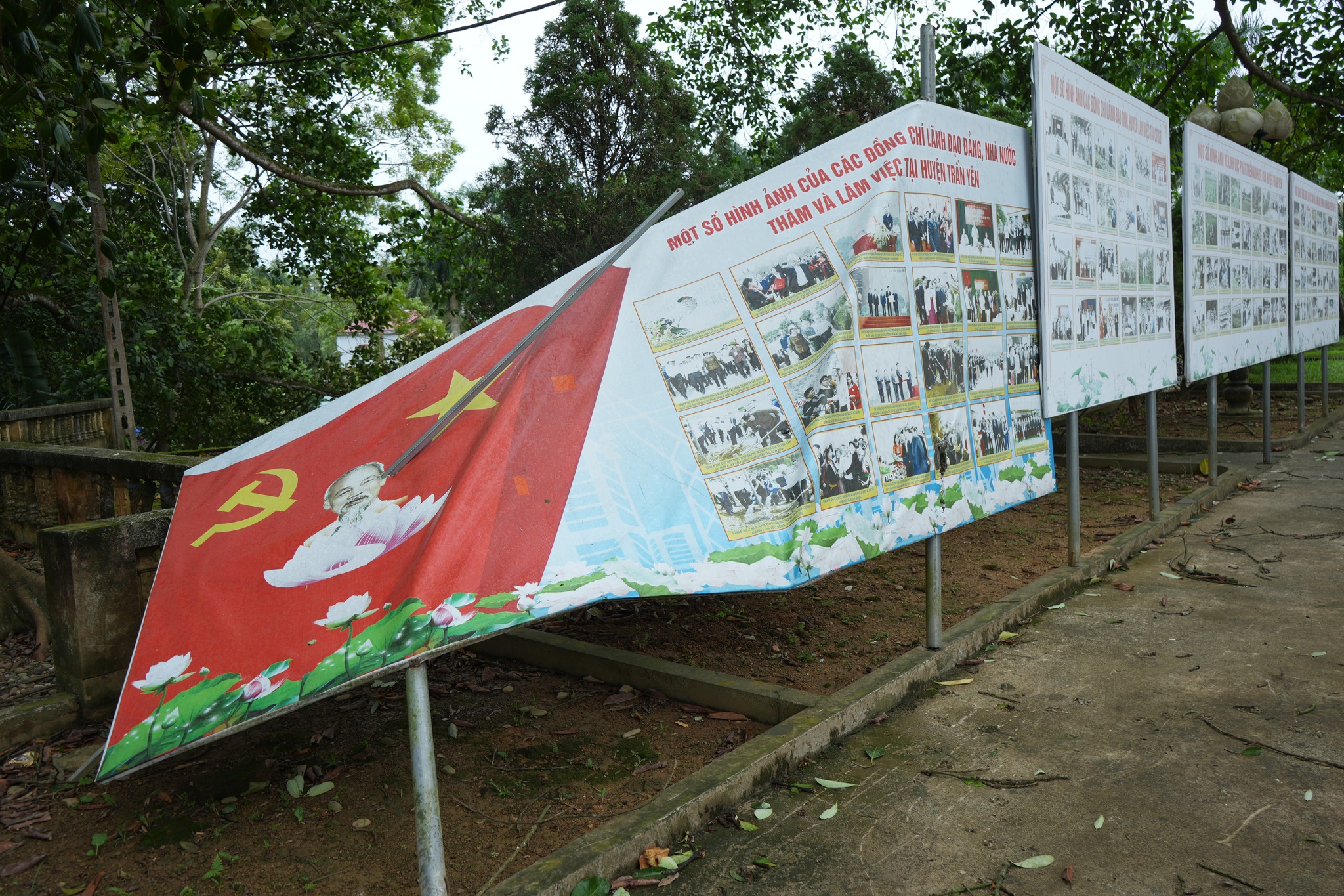 Dông lốc còn làm đổ 1 cột điện hạ thế, một số tường rào, pano ở các xã bị gẫy đổ, đến nay Trấn Yên đã có trên 37ha lúa bị gẫy đổ.