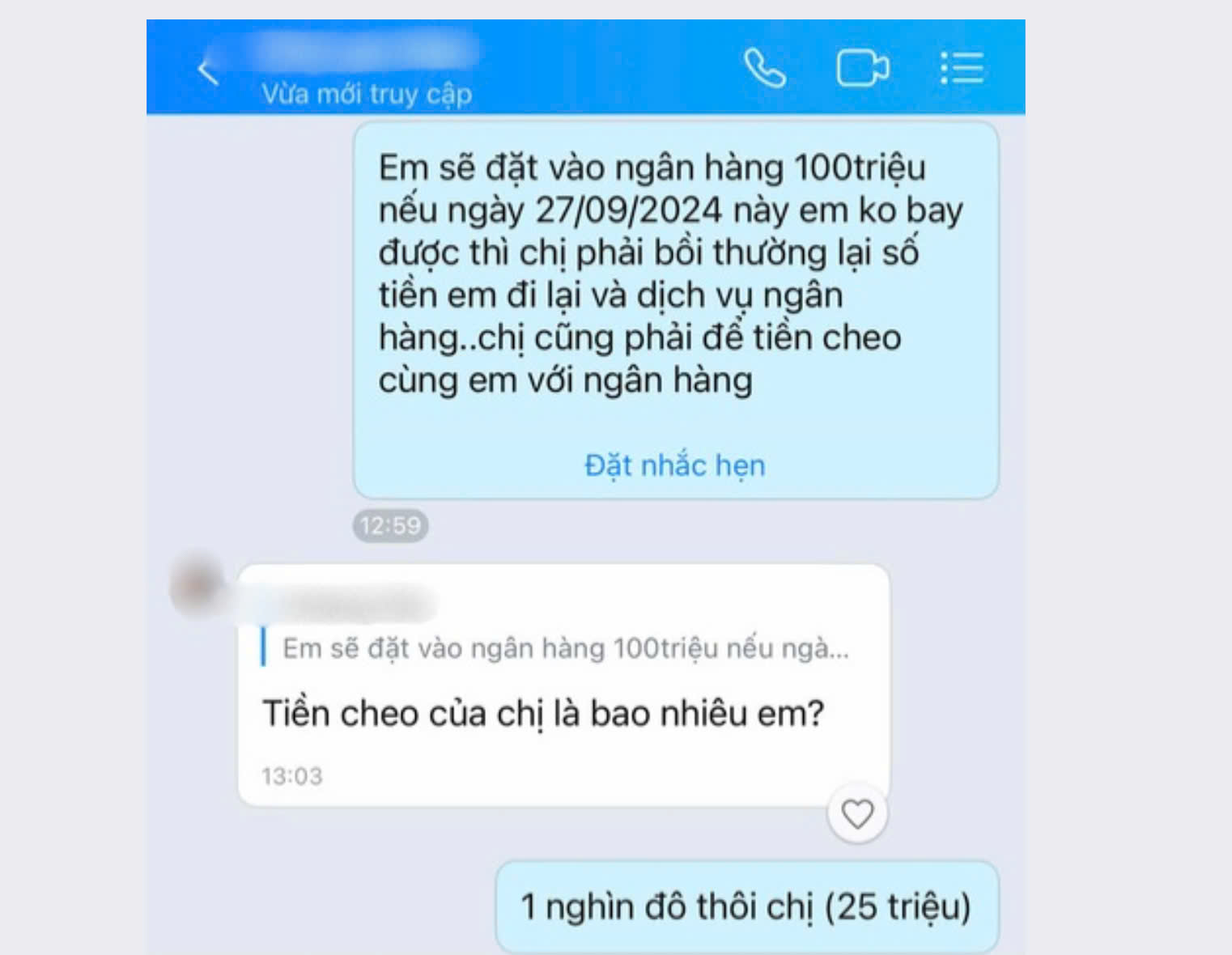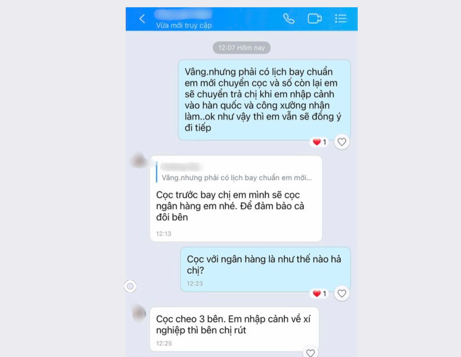 Nhân viên yêu cầu anh H. chuyển 330 triệu đồng là chi phí để xuất cảnh kèm với lời hứa số tiền này được “treo” tại Ngân hàng, nếu người lao động không sang được Hàn Quốc có thể rút tiền về.