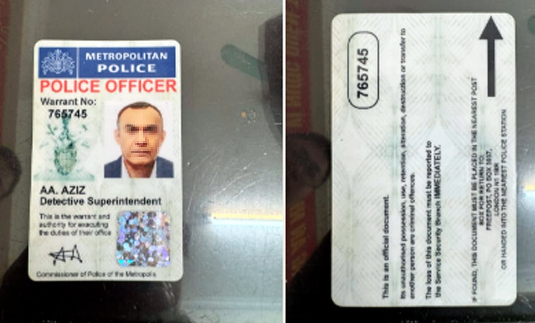 Kiểm tra người đối tượng Ghiasi, Công an phường đã thu giữ 1 thẻ “POLICE” London (Anh) có tên và ảnh của đối tượng Abdul Aziz. Đây chính là tấm thẻ đối tượng Ghisia giơ ra và tự nhận mình là Interpol để kiểm tra du khách nước ngoài đi một mình.