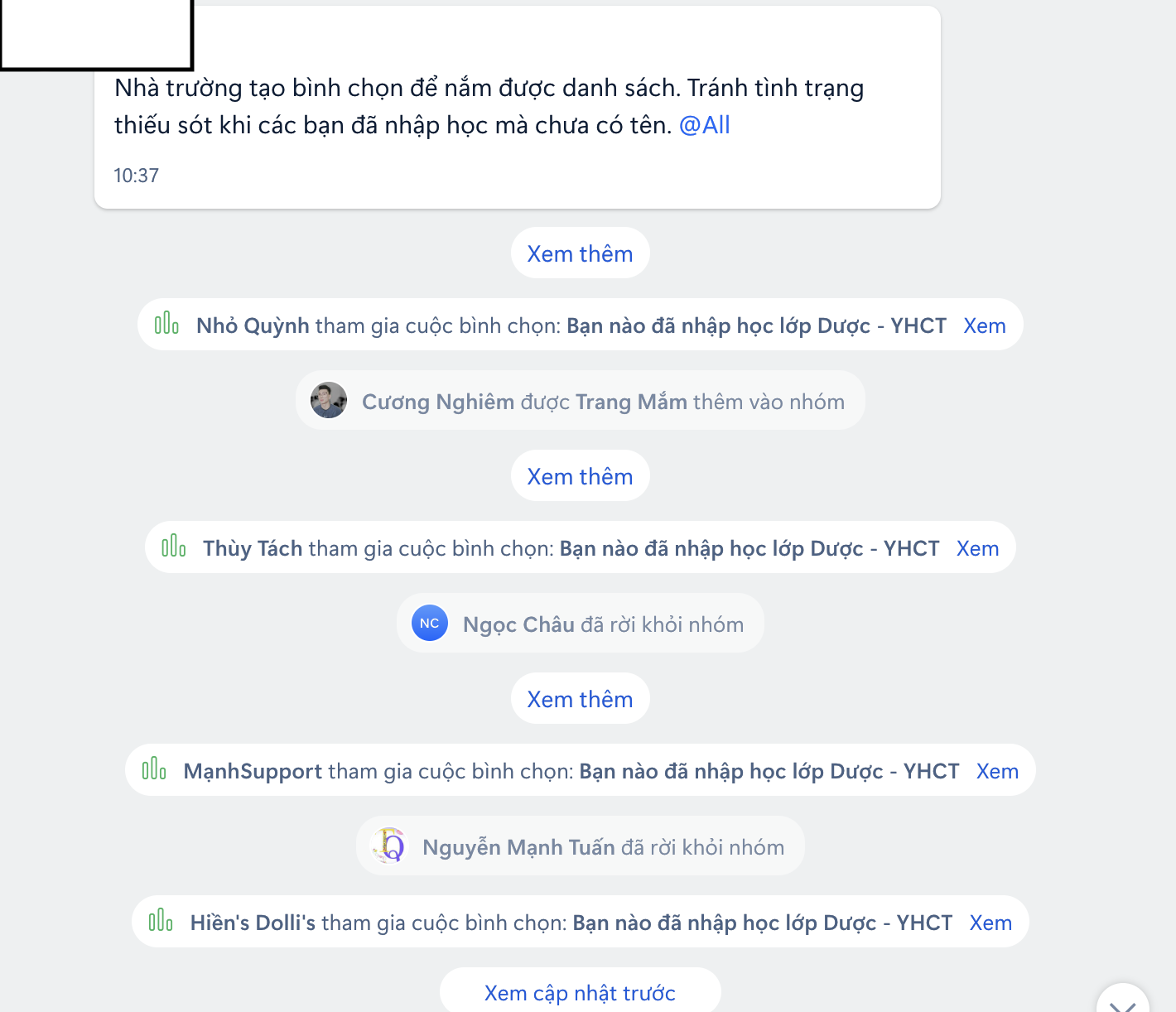 Quản lý lớp trên Zalo (Ảnh: Học viên cung cấp)
