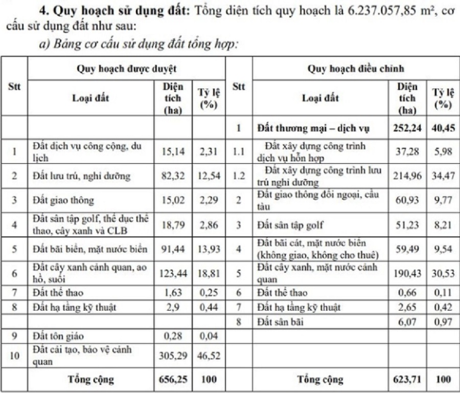 Tổng diện tích điều chỉnh quy hoạch là 623,7ha, giảm 33ha so với quy hoạch được duyệt trước đó.