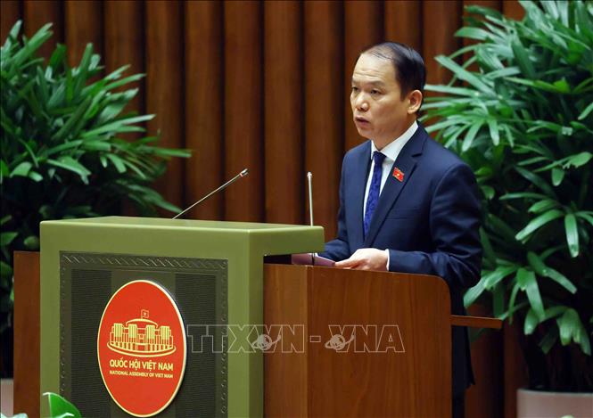 Chủ nhiệm Ủy ban Pháp luật của Quốc hội Hoàng Thanh Tùng trình bày Báo cáo thẩm tra dự án Luật Tổ chức chính quyền địa phương (sửa đổi). Ảnh: Phạm Kiên/TTXVN