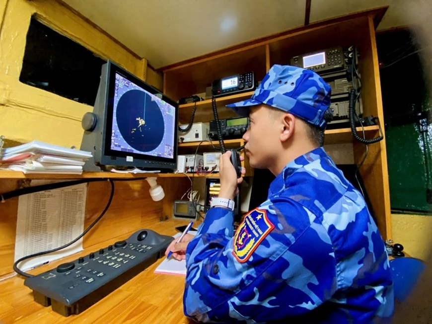 Cảnh sát biển hướng dẫn và thông tin cho người dân về siêu bão Yagi , Ảnh minh họa : qdnd