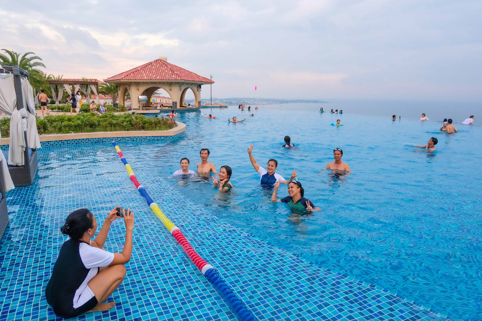 Vui chơi ở bể bơi của resort ở Phan Thiet , Binh Thuan