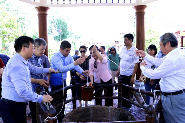 Các đại biểu bên một giếng nước cổ nằm trong Bảo tàng Quang Trung - giếng nước gắn với tuổi thơ 3 anh em Nguyễn Nhạc, Nguyễn Huệ, Nguyễn Lữ cũng như sự nghiệp lừng lẫy của nhà Tây Sơn
