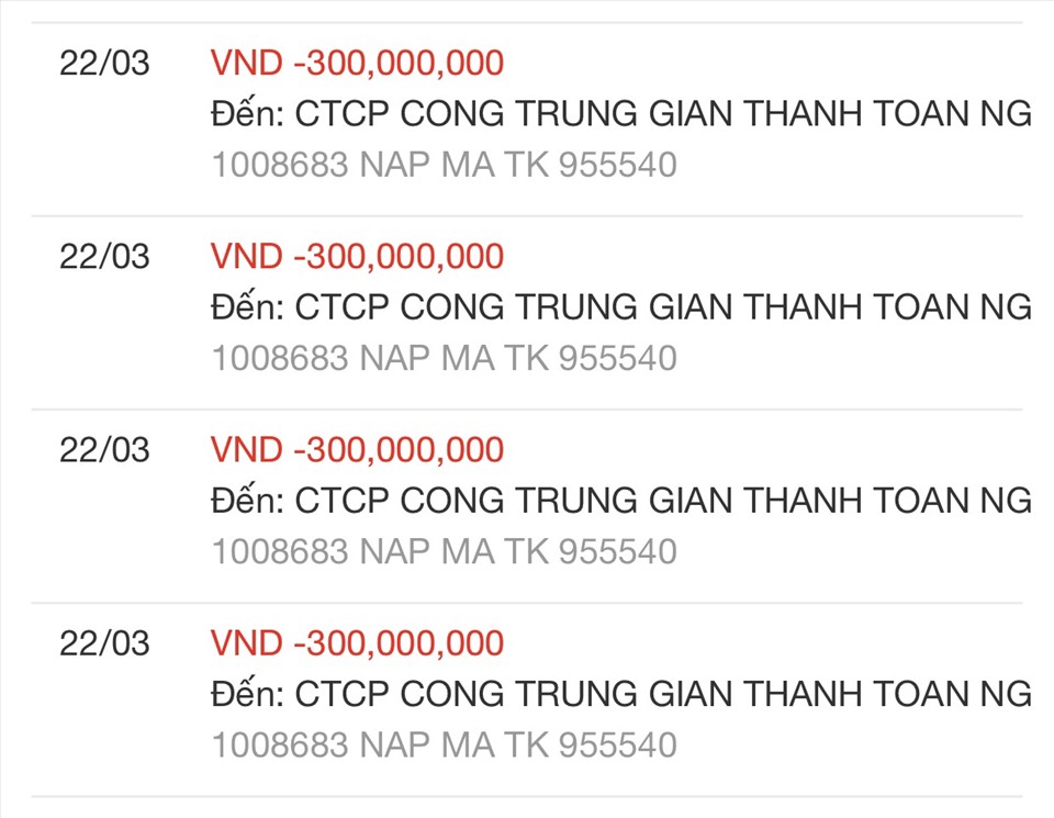 “Họ giải thích và hướng dẫn chúng tôi nạp tiền vào tài khoản trên sàn chứng khoán qua Ngân lượng vì đây là kênh thanh toán hợp pháp được Nhà nước công nhận. Với mỗi giao dịch nạp tiền/ rút tiền, chúng tôi sẽ mất khoản phần trăm phí giao dịch cho kênh thanh toán Ngân lượng.
