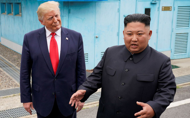 Tổng thống Donald Trump đã trở thành Tổng thống Mỹ đương nhiệm đầu tiên bước qua đường ranh giới phân chia hai miền Triều Tiên tại DMZ sang lãnh thổ của Triều Tiên. (Nguồn: Irish Times)
