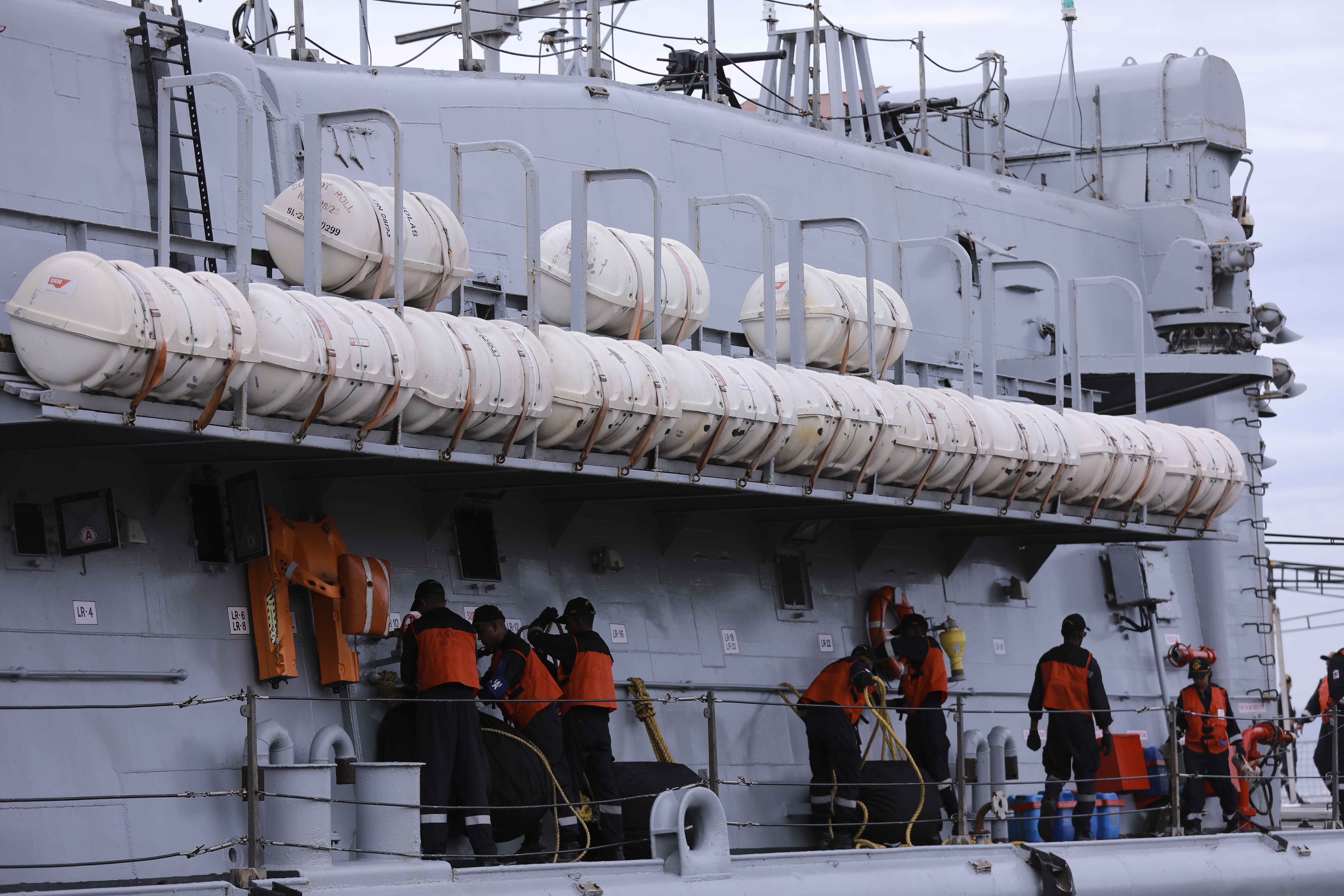 Đội tàu Hải quân Ấn Độ gồm tàu khu trục INS Delhi, tàu hộ vệ chống ngầm INS Kiltan và tàu chở dầu INS Shakti.