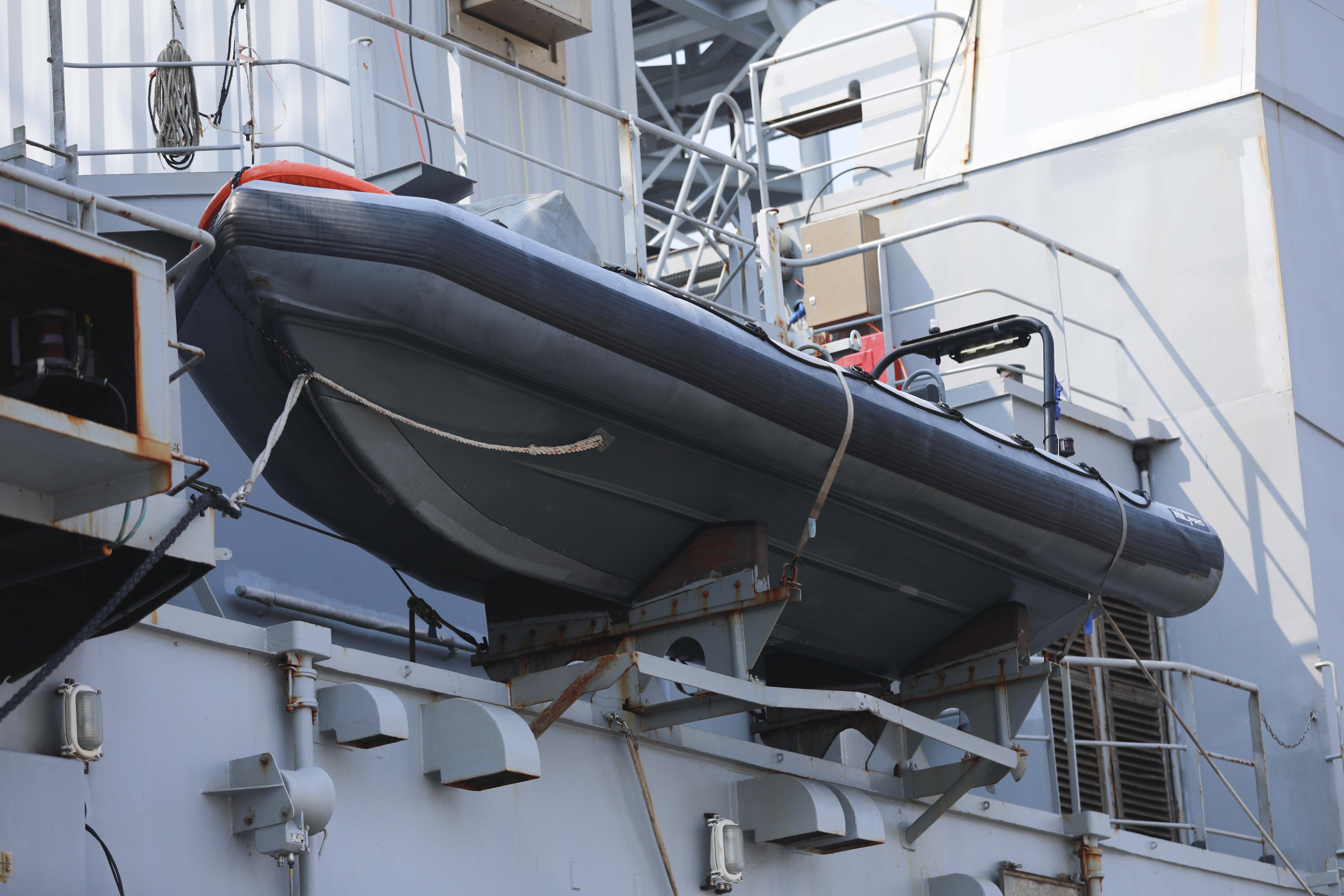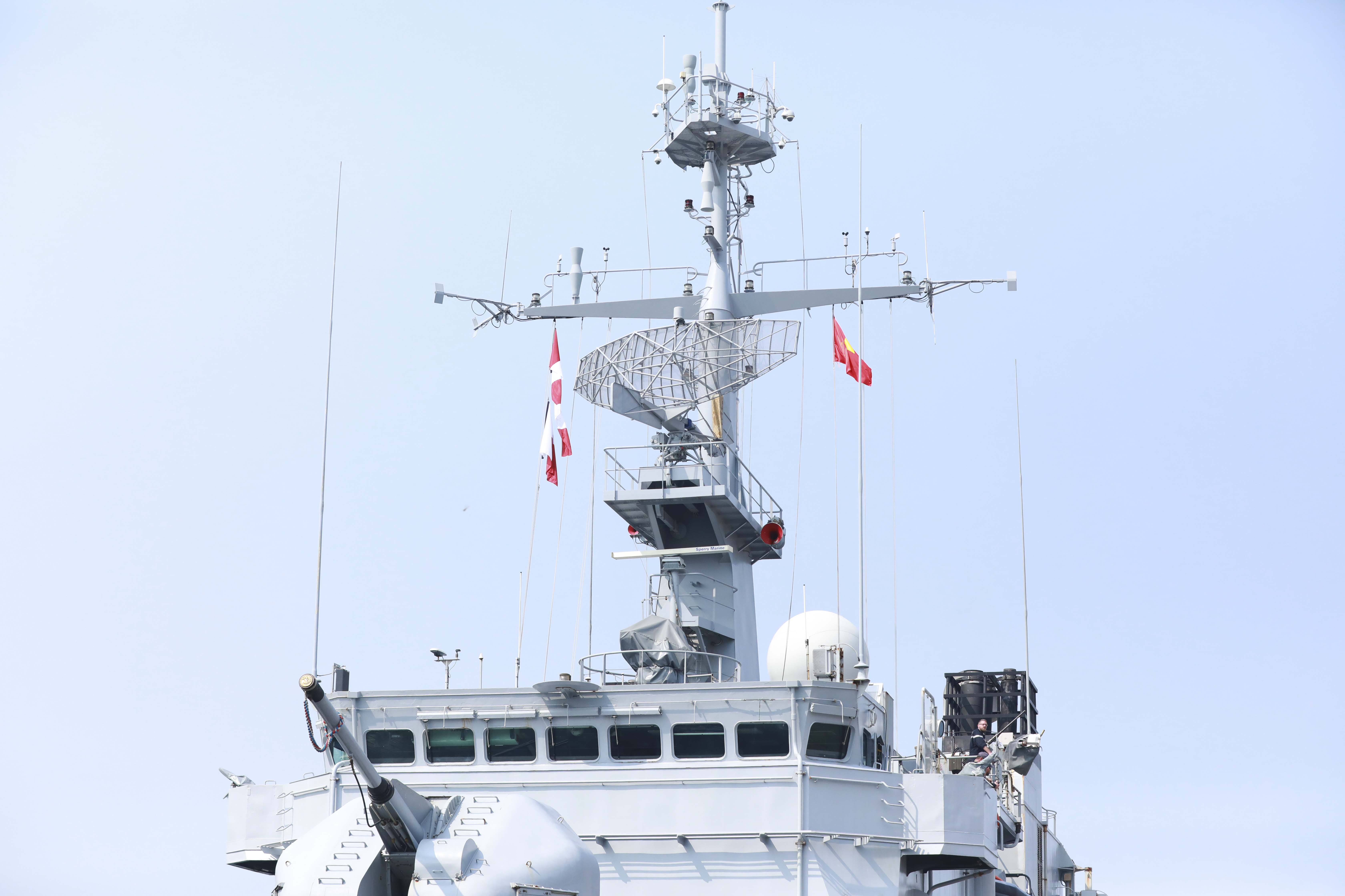 Trên tàu có nhiều pháo, súng, xuồng cao tốc, cùng hệ thống radar hiện đại...