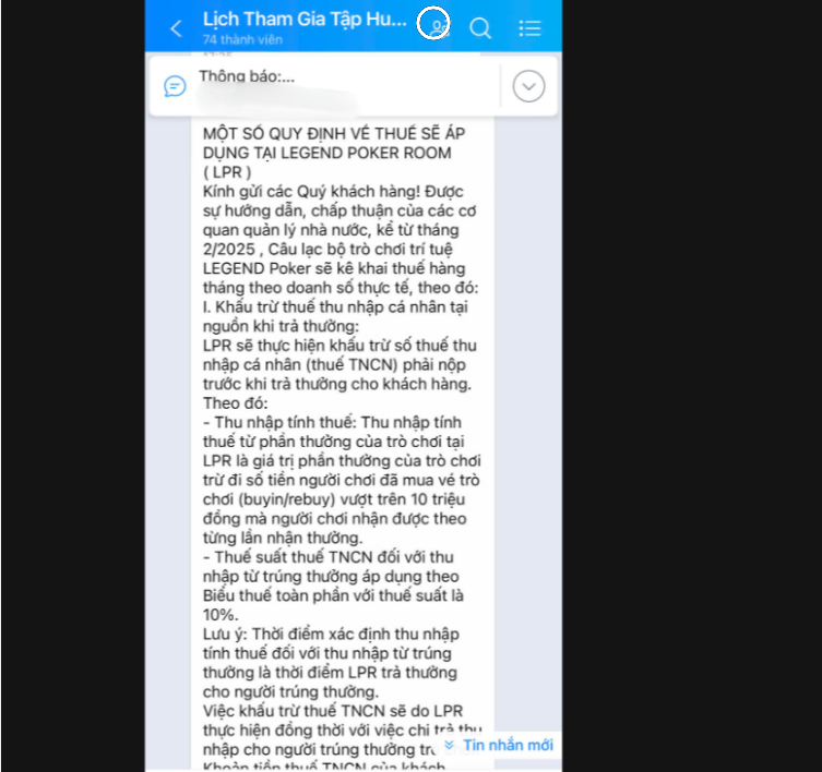 Bên cạnh đó, cũng cần làm rõ câu lạc bộ Legend Poker có thực hiện nghĩa vụ đầy đủ với cơ quan thuế hay không? Khi mà câu lạc bộ này vẫn yêu cầu người chơi nộp thuế 10% trong trường hợp giải thưởng trên 10 triệu đồng.