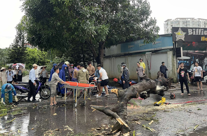 Khoảng 15h40 ngày 6/9, một người đàn ông điều khiển xe máy chở theo một phụ nữ đi trên đường Nguyễn Hữu Thọ, phường Hoàng Liệt, quận Hoàng Mai, khi tới gần đường sắt (hướng Giải Phóng) bất ngờ bị một cây phượng bật gốc đè trúng. Người phụ nữ ngồi sau tử vong tại chỗ, người đàn ông bị thương nặng vùng đầu, được người dân đưa đi cấp cứu.
