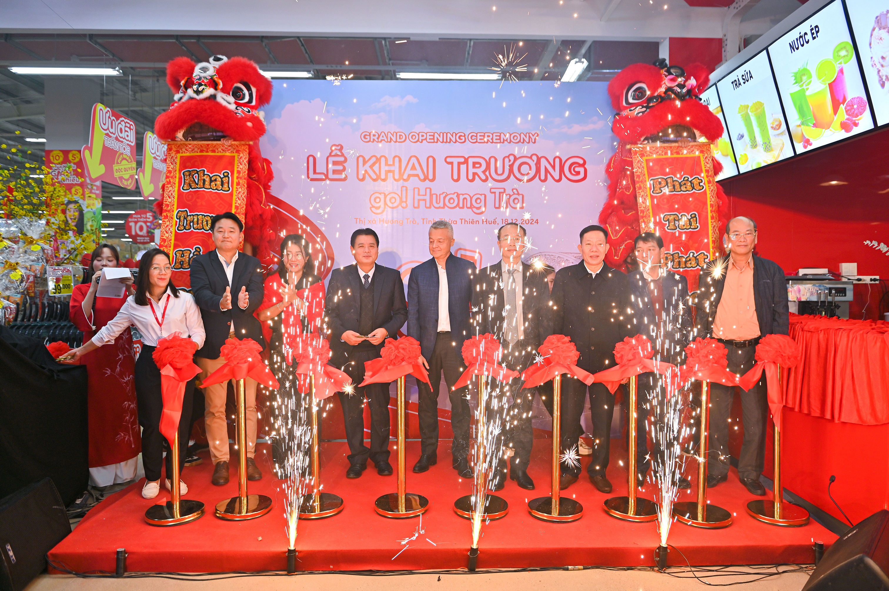 Các đại biểu thực hiện nghi thức khai trương siêu thị go! Hương Trà.