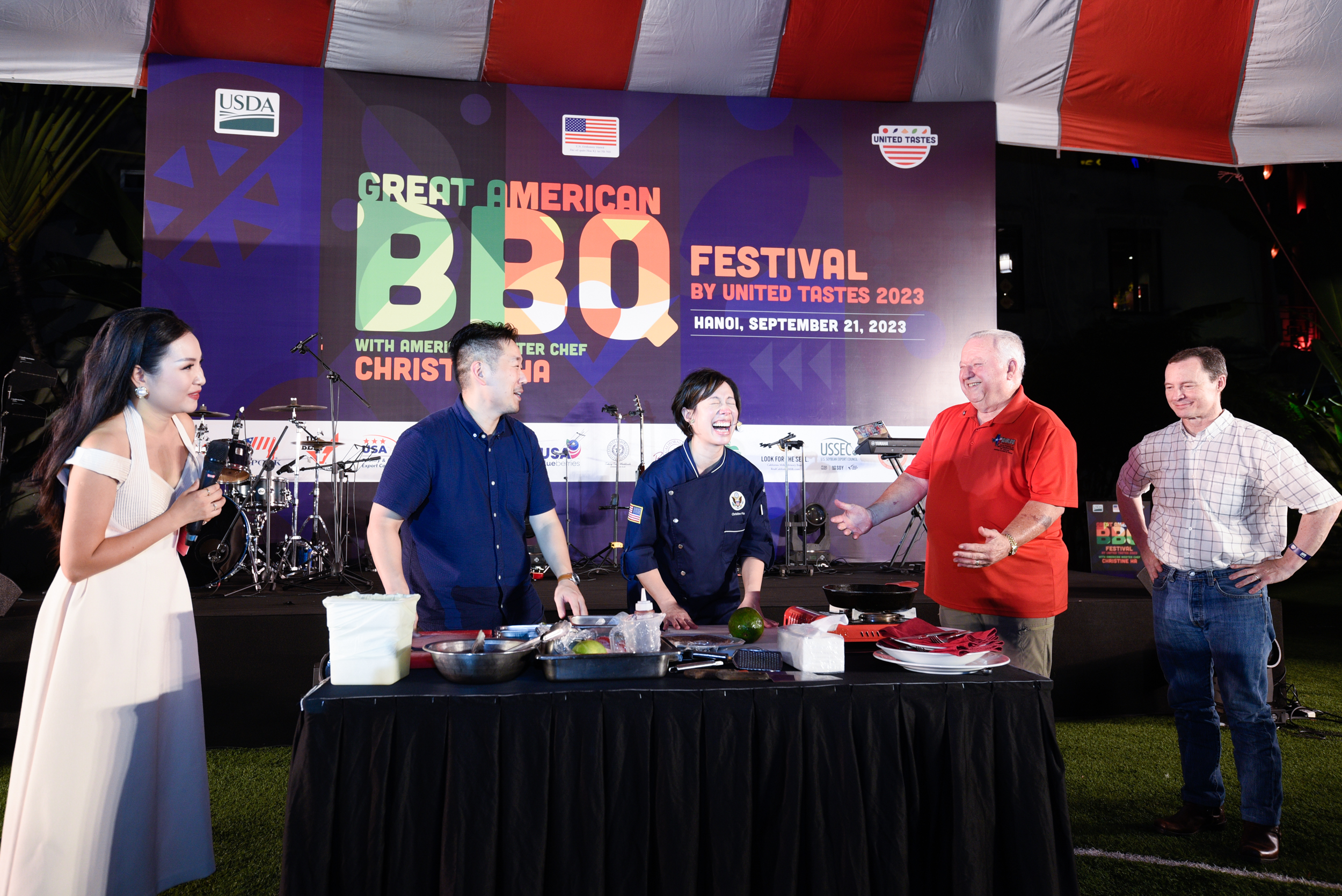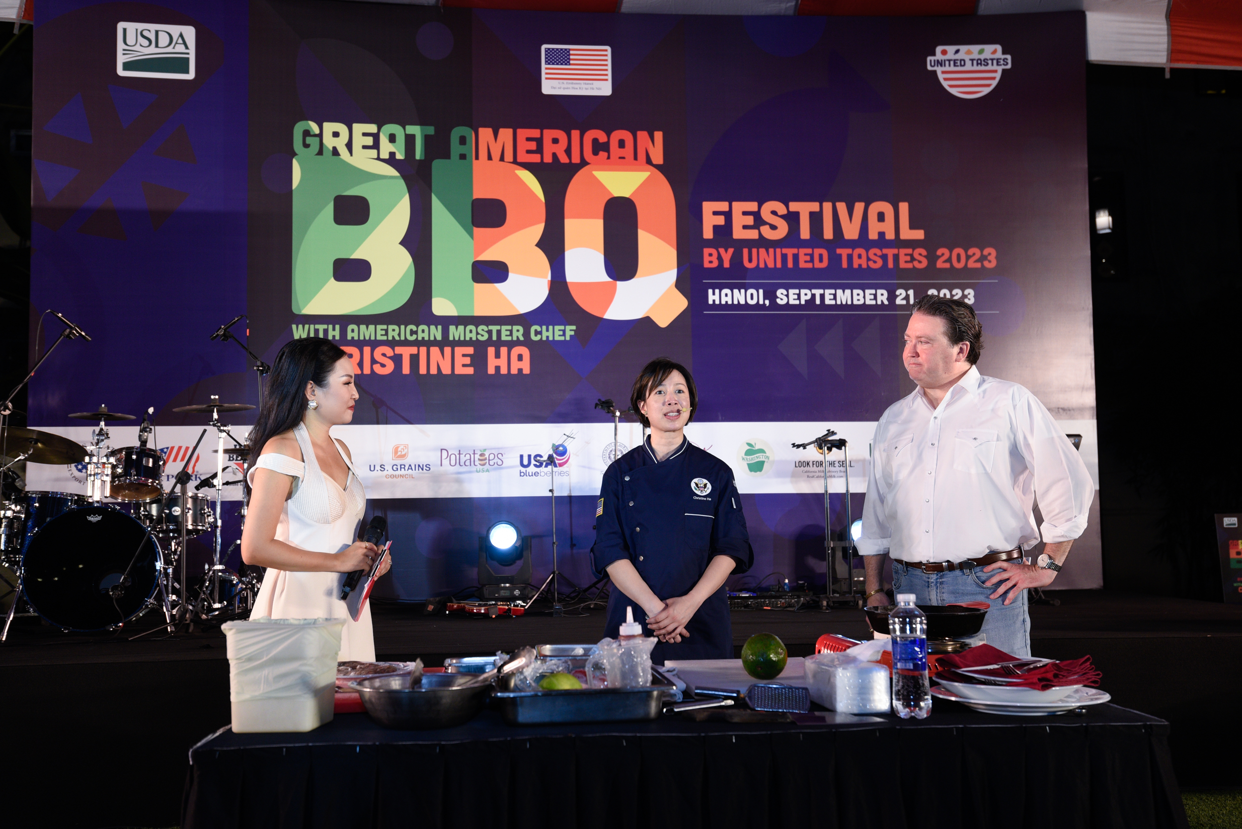 TCVM- Nhằm chúc mừng sự kiện Hoa Kỳ và Việt Nam nâng cấp lên Quan hệ Đối tác Chiến lược Toàn diện, Bộ Nông nghiệp Hoa Kỳ và Đại sứ quán Hoa Kỳ tại Hà Nội tổ chức Lễ hội tiệc nướng Mỹ vị Hoa Kỳ United Tastes, với sự hiện diện của Quán quân Master Chef Christine Hà.
