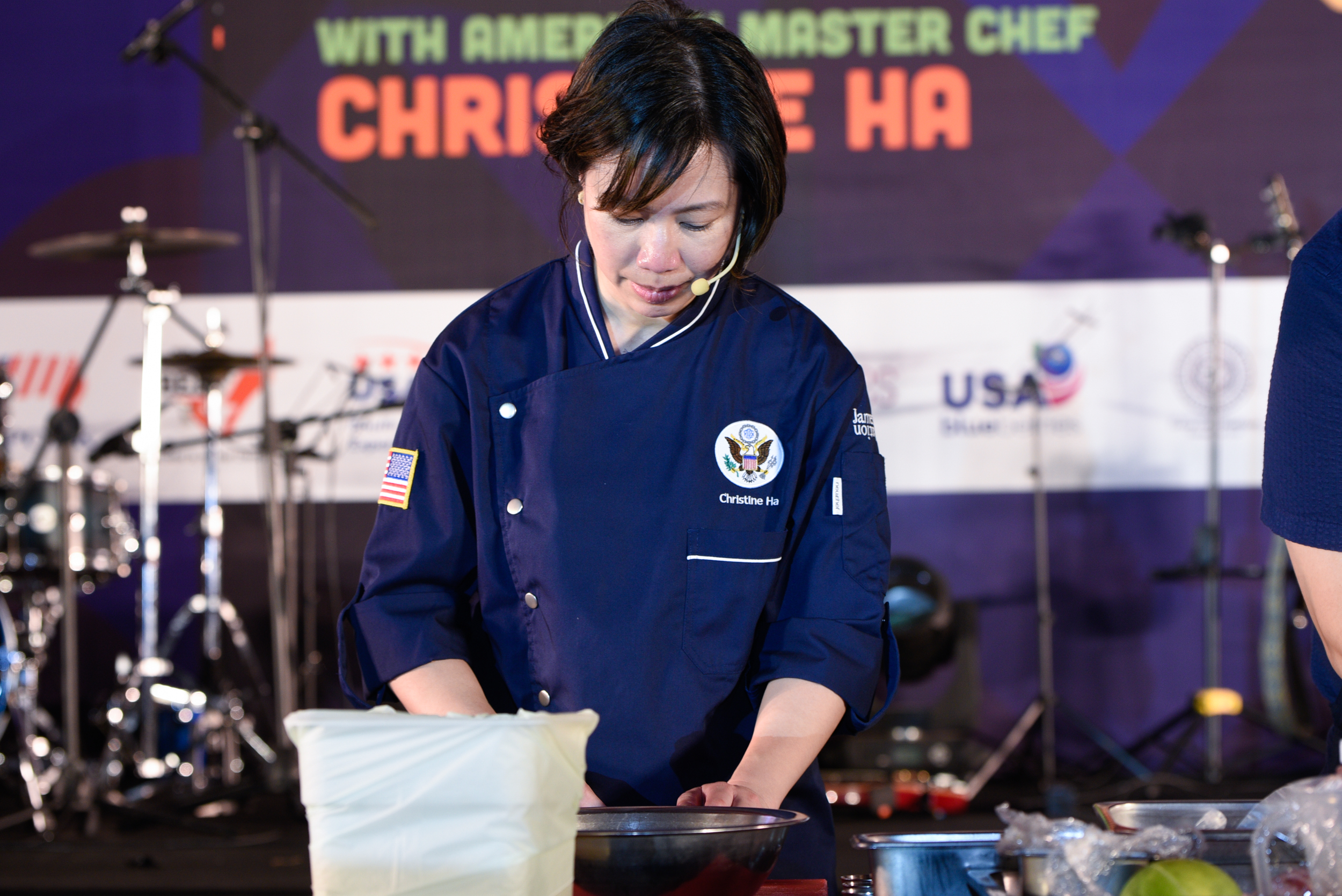 Quán quân Master Chef người Mỹ gốc Việt Christine Hà cho biết: “Tôi rất vui được tham gia sự kiện Lễ hội Tiệc nướng Mỹ Vị Hoa Kỳ tại Hà Nội lần này. Đây là một phần trong chuyến thăm khám phá ẩm thực Việt Nam của tôi.
