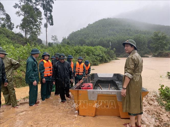 Các phương tiện được huy động để tiếp tục công tác tìm kiếm cứu nạn, hỗ trợ người dân bảo đảm an toàn, hạn chế tối đa thiệt hại do thiên tai gây ra tại Hà Tĩnh, ngày 31/10/2023. Ảnh: Hoàng Ngà/TTXVN