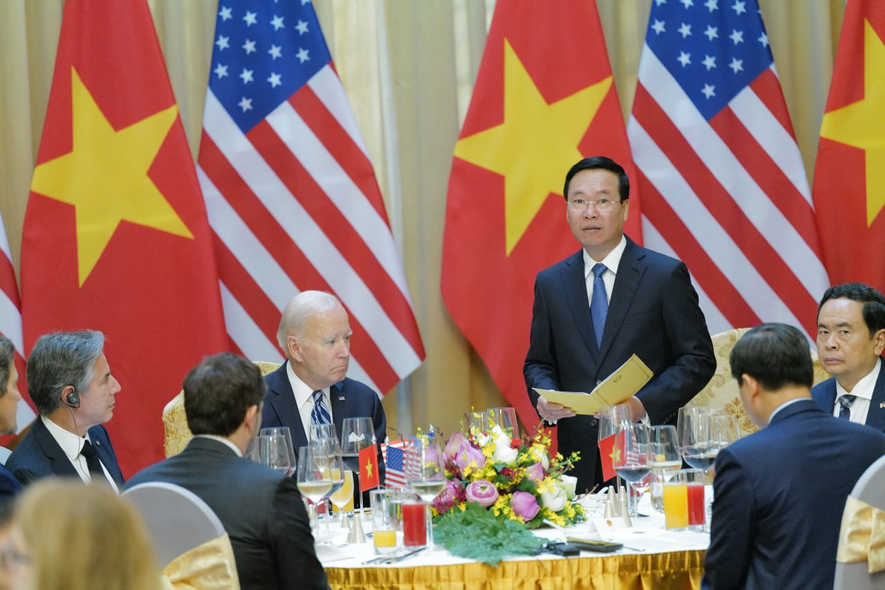 Chủ tịch nước Võ Văn Thưởng phát biểu tại tiệc chiêu đãi Tổng thống Mỹ Joe Biden đang trong chuyến thăm cấp Nhà nước tới Việt Nam trong hai ngày 10-11/9. (Ảnh: Pool)