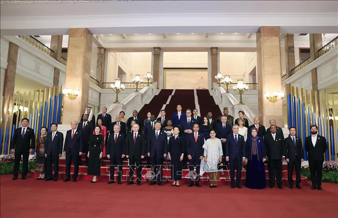 Chủ tịch nước Võ Văn Thưởng cùng các Trưởng đoàn và Phu nhân các nước dự Diễn đàn Cấp cao Hợp tác quốc tế "Vành đai và Con đường" lần thứ ba.