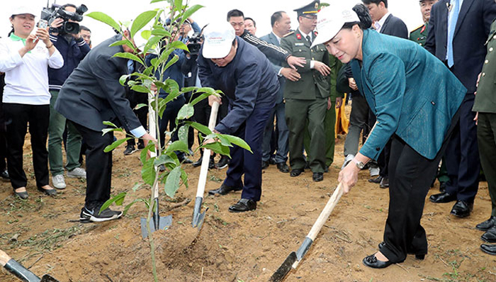 Ngay sau Lễ ra quân, Chủ tịch QH Nguyễn Thị Kim Ngân và các đại biểu đã trồng hơn 200 cây dổi, hơn 2.000 cây keo và nhiều loại cây trồng lâu năm khác tại Tiểu khu 74; khánh thành Rừng cây lưu niệm “Tết trồng cây đời đời nhớ ơn Bác Hồ Xuân Kỷ Hợi”.