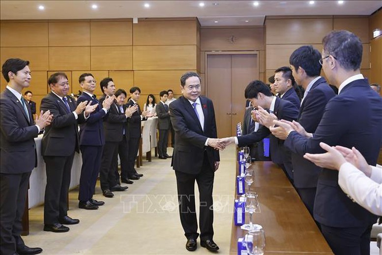 Chủ tịch Quốc hội Trần Thanh Mẫn và các đại biểu Đoàn Ban Thanh niên Đảng LDP - Ảnh: TTXVN