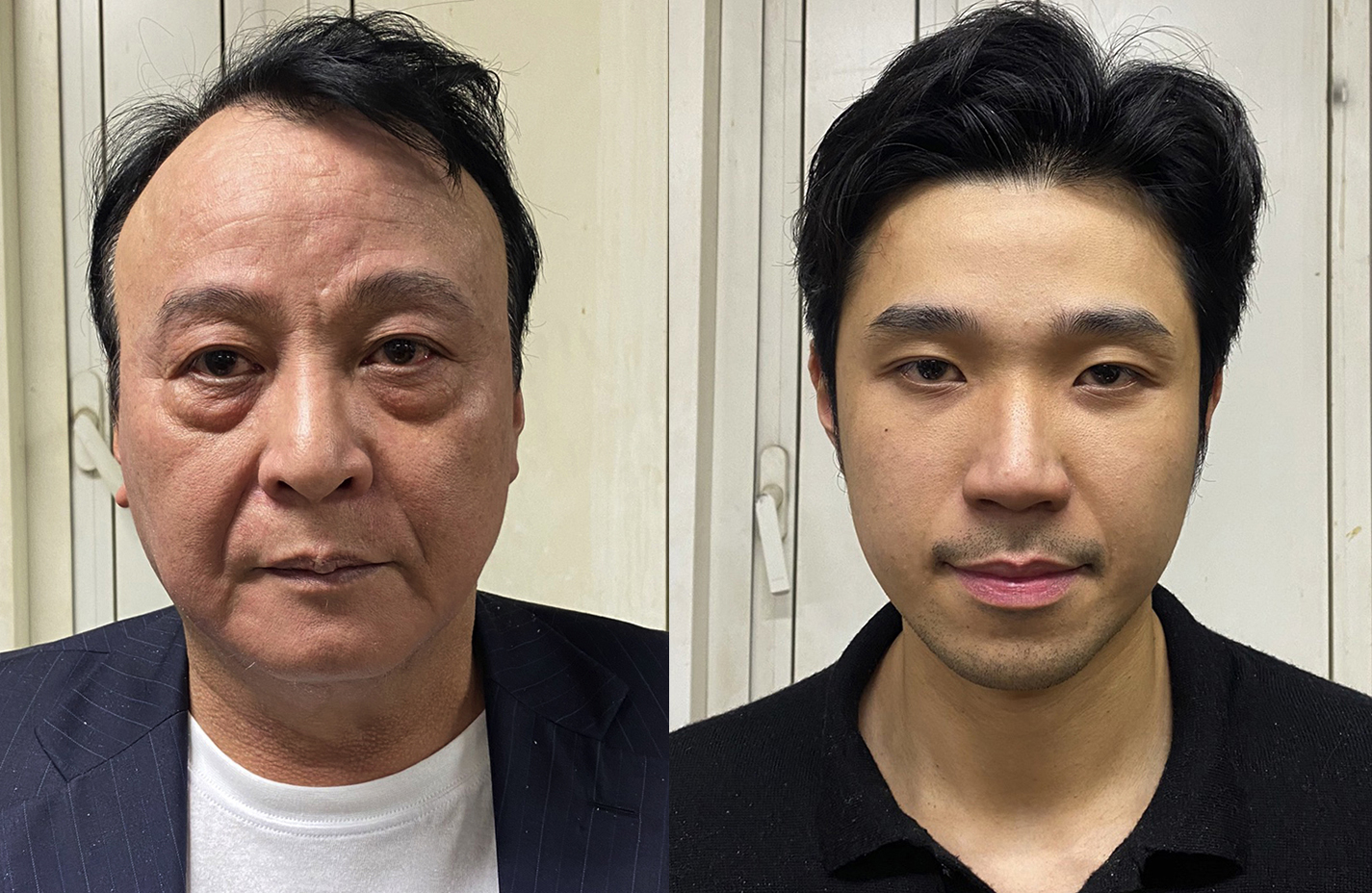 Bị can Đỗ Anh Dũng (trái) và con trai Đỗ Hoàng Việt. Ảnh: Bộ Công an