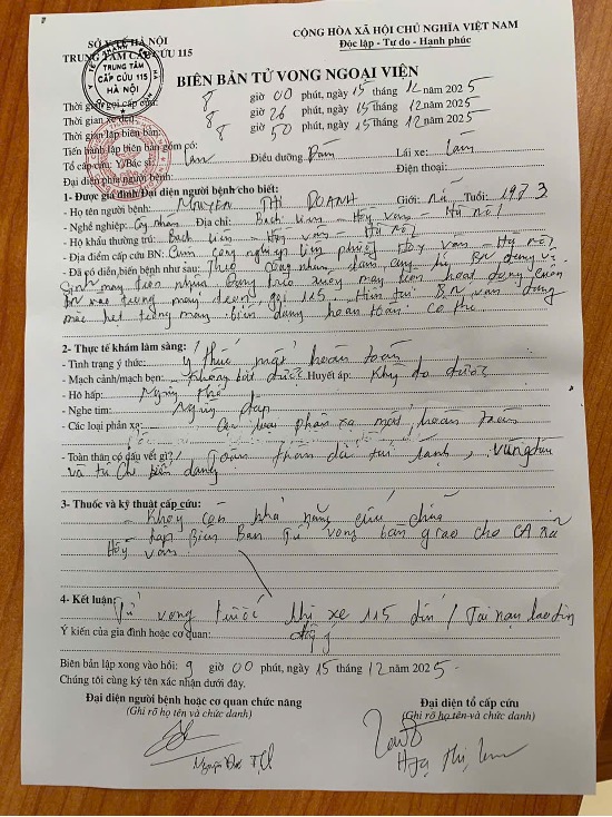 Sự việc đau lòng xảy ra vào lúc 7 giờ 55 phút ngày 15/12/2025, tại Công ty Cổ phần Công nghiệp và Thương mại Hoàng Hà (Công ty Hoàng Hà), địa chỉ tại số 273, Xã Thường Tín, TP Hà Nội, Việt Nam.