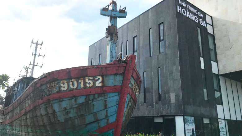 Ở sân bên ngoài Nhà trưng bày Hoàng Sa là tàu cá ĐNa 90152TS được chính quyền TP Đà Nẵng đưa về trưng bày, bảo quản.