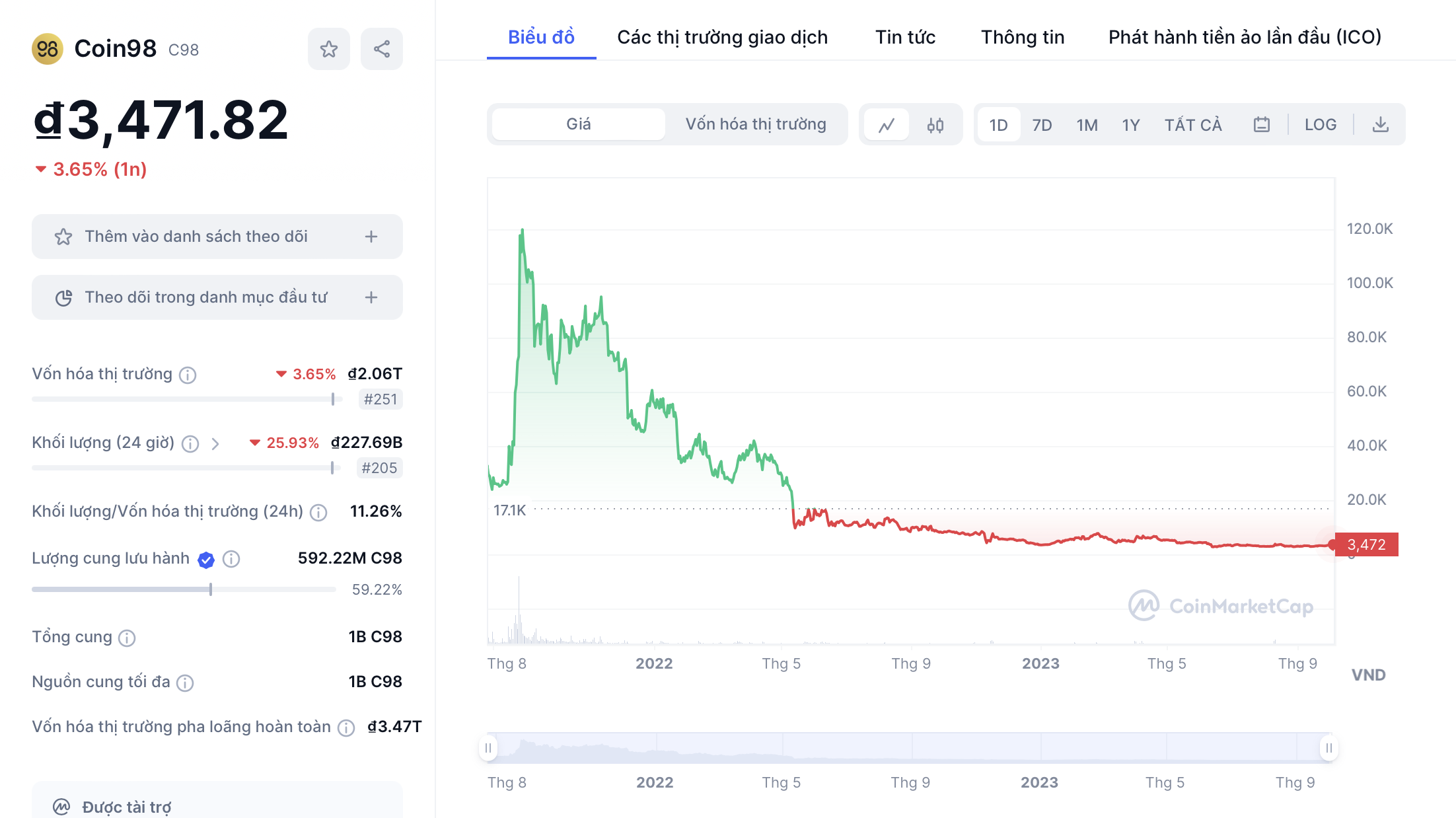 Trong khi đồng C98 từng đạt được đỉnh cao vào năm 2021 khi giá trị có thể chạm ngưỡng 6 USD.