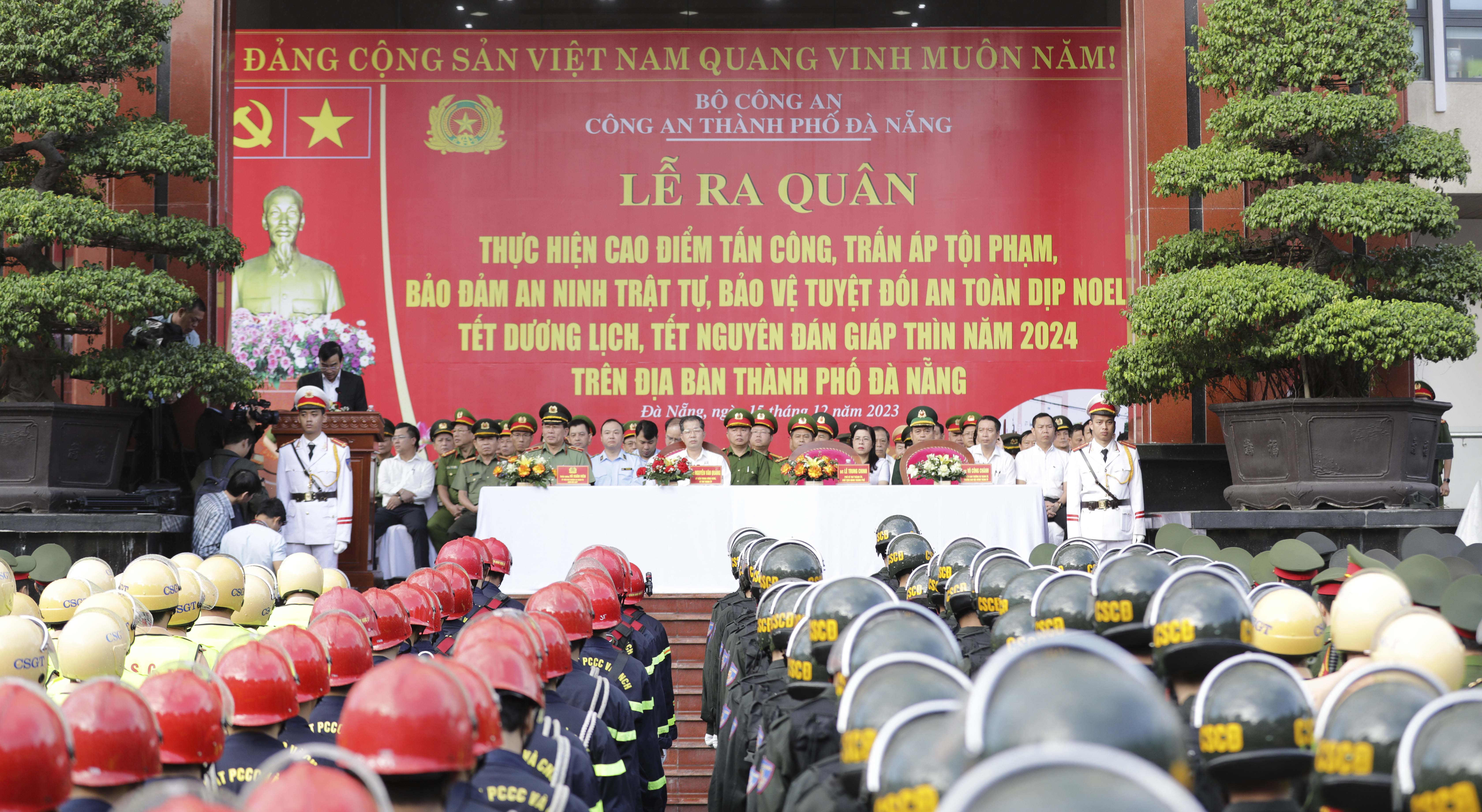 Sáng 15/12, Công an thành phố Đà Nẵng tổ chức lễ ra quân thực hiện đợt cao điểm tấn công, trấn áp tội phạm, bảo đảm an ninh trật tự, bảo vệ tuyệt đối an toàn dịp Noel, tết Dương lịch, tết Nguyên đán Giáp Thìn năm 2024 trên địa bàn.