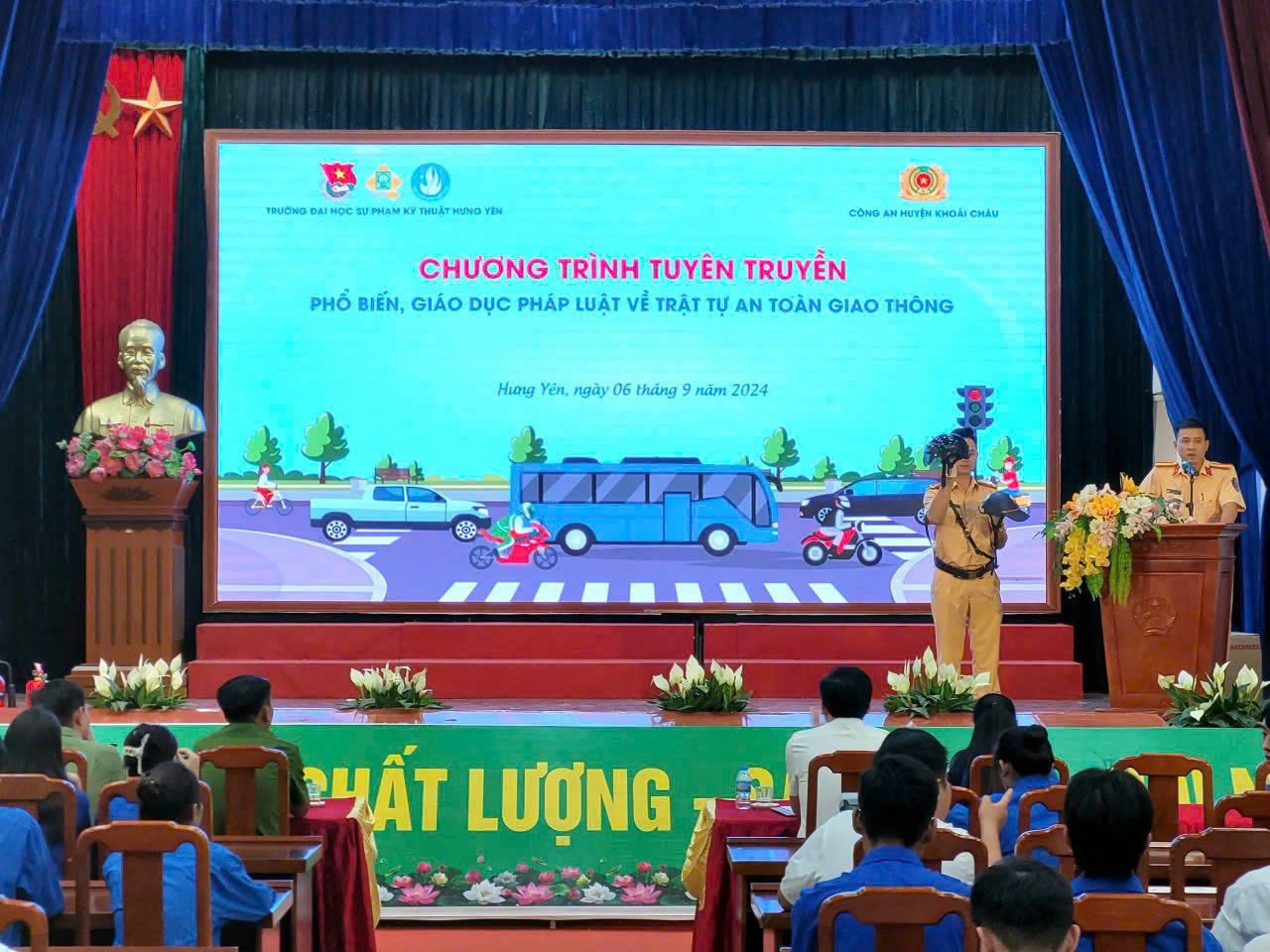 Trước đó, ngày 6/9, Công an huyện Khoái Châu đã kết hợp cùng Trường Đại học Sư phạm Hưng Yên đã tổ chức chương trình tuyên truyền phổ biến, giáo dục pháp luật về trật tự an toàn giao thông