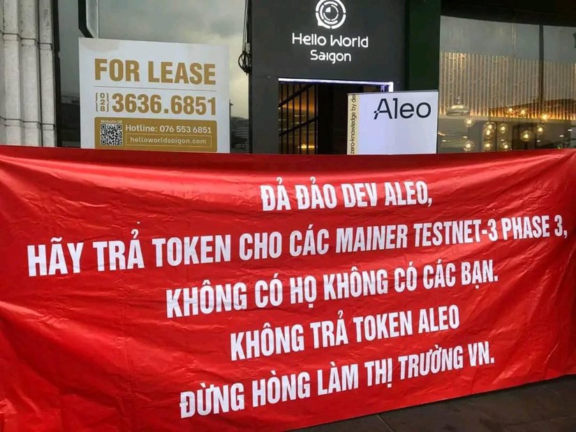 Như đã phản ánh trước đó, dự án tiền điện tử ALEO đang bị nhiều nhà đầu tư căng băng rôn, khẩu hiệu để đòi tiền. Nguyên nhân là một số cá nhân tại Việt Nam đã lợi dụng danh nghĩa của dự án này để huy động vốn trái phép, bán các gói đào coin vô giá trị.