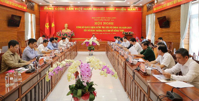 Tại hội nghị, Phó Giám đốc Học viện Chính trị Quốc Hồ Chí Minh Lê Văn Lợi, Phó Trưởng Đoàn Thường trực công bố Quyết định, kế hoạch kiểm tra của Bộ Chính trị đối với Ban Thường vụ Tỉnh ủy Đồng Tháp, Bến Tre, An Giang. Các nội dung kiểm tra gồm: Việc tổng kết Nghị quyết số 18-NQ/TW, ngày 25/10/2017 của Ban Chấp hành Trung ương Đảng khóa XII “Một số vấn đề về tiếp tục đổi mới, sắp xếp tổ chức bộ máy của hệ thống chính trị tinh gọn, hoạt động hiệu lực, hiệu quả” và Kết luận số 121-KL/TW ngày 24/1/2025 của Ban Chấp hành Trung ương Đảng về tổng kết Nghị quyết 18, gắn với việc thành lập và hoạt động của các đảng bộ mới.