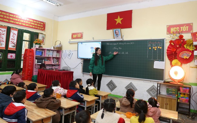 Các lớp học tại Trường Tiểu học Sa Pa được trang bị đèn sưởi để đảm bảo sức khỏe cho học sinh. Ảnh: TTXVN
