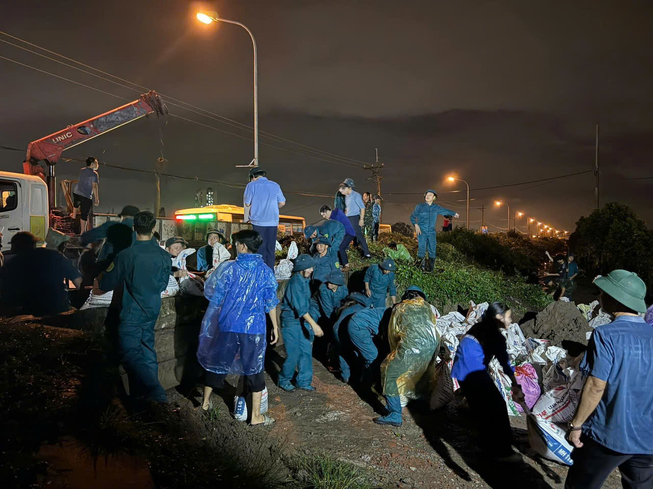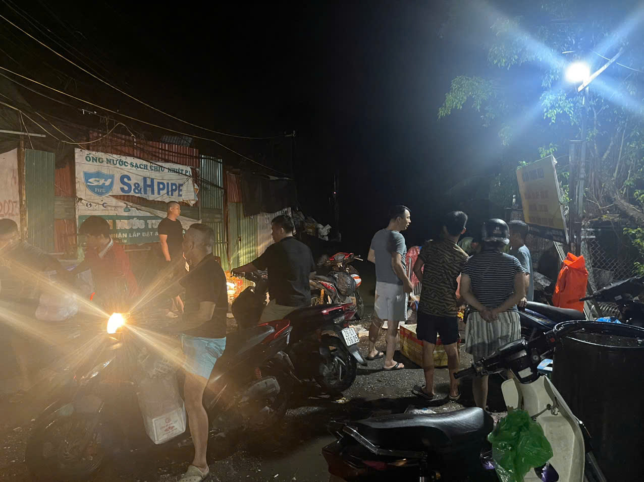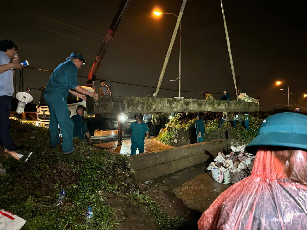 Người dân khu vực bãi giữa nhanh chóng thu dọn dù bây giờ là 0g đêm ngày 11/9