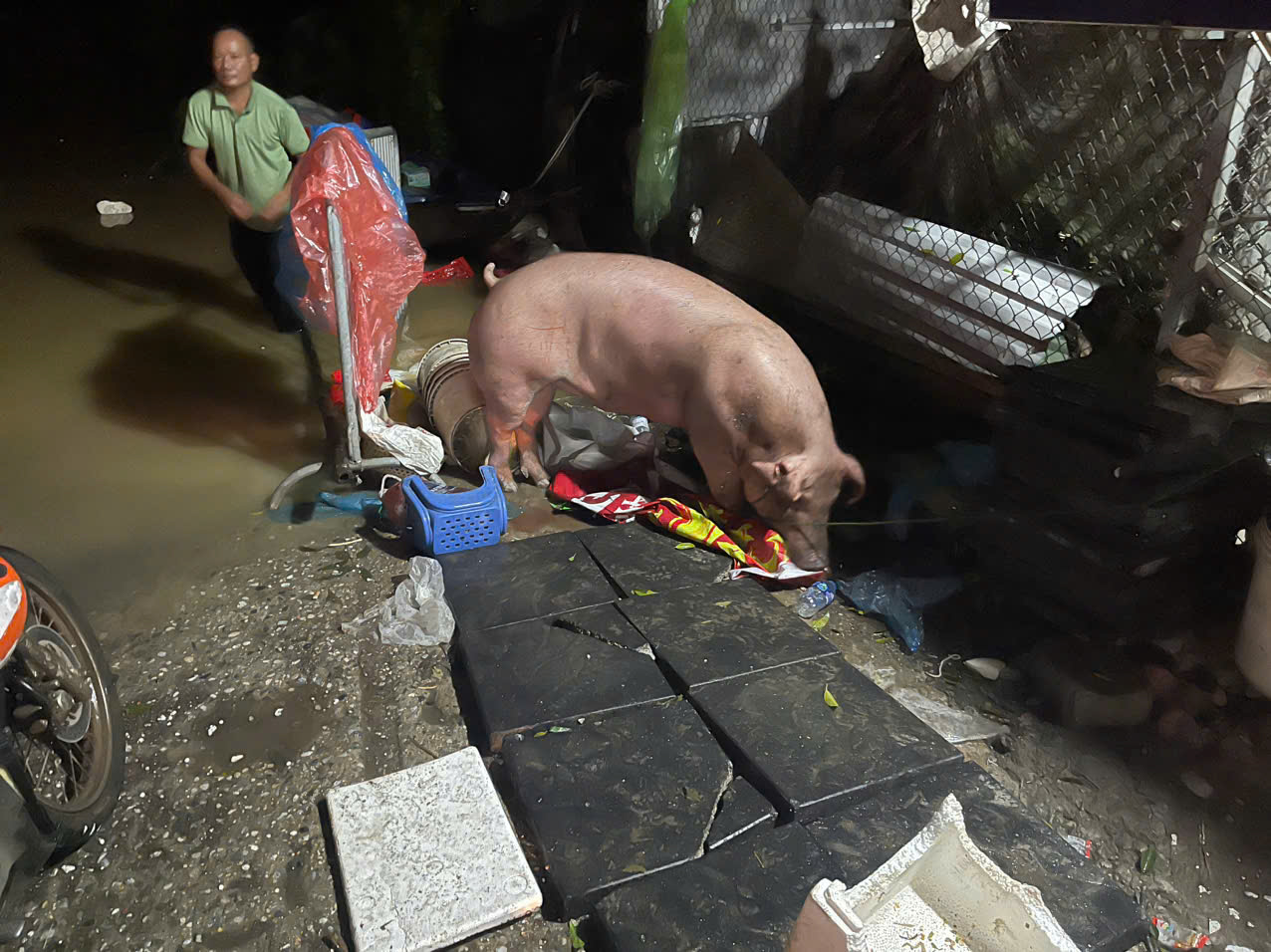 Lợn tự cứu mình bơi từ bãi giữa đến trước nhà dân