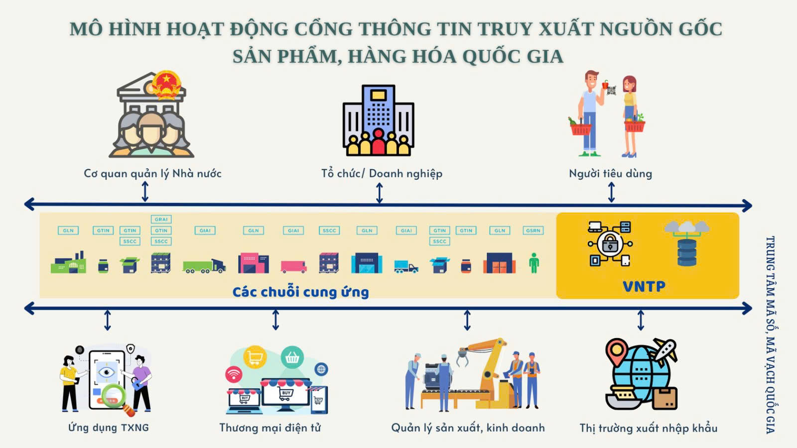 Cổng thông tin truy xuất nguồn gốc sản phẩm, hàng hóa quốc gia được xây dựng và vận hành bởi Trung tâm Mã số, mã vạch Quốc gia (thuộc Tổng cục Tiêu chuẩn Đo lường Chất lượng, Bộ Khoa học và Công nghệ). Đây là đơn vị phục vụ quản lý nhà nước về mã số, mã vạch và TXNG tại Việt Nam và là đơn vị chuyên môn đầu ngành về các loại mã định danh và truy xuất nguồn gốc theo tiêu chuẩn GS1 toàn cầu.