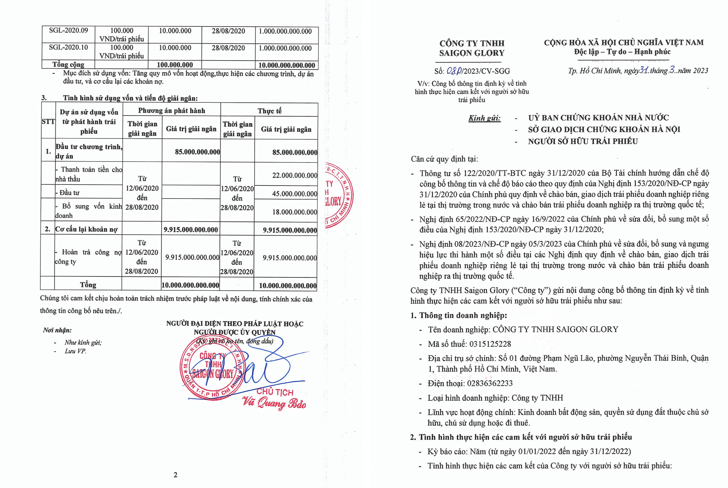 Đây cũng là thời điểm, Saigon Glory liên tục huy động vốn qua kênh trái phiếu với tổng giá trị khoảng 10.000 tỷ đồng.