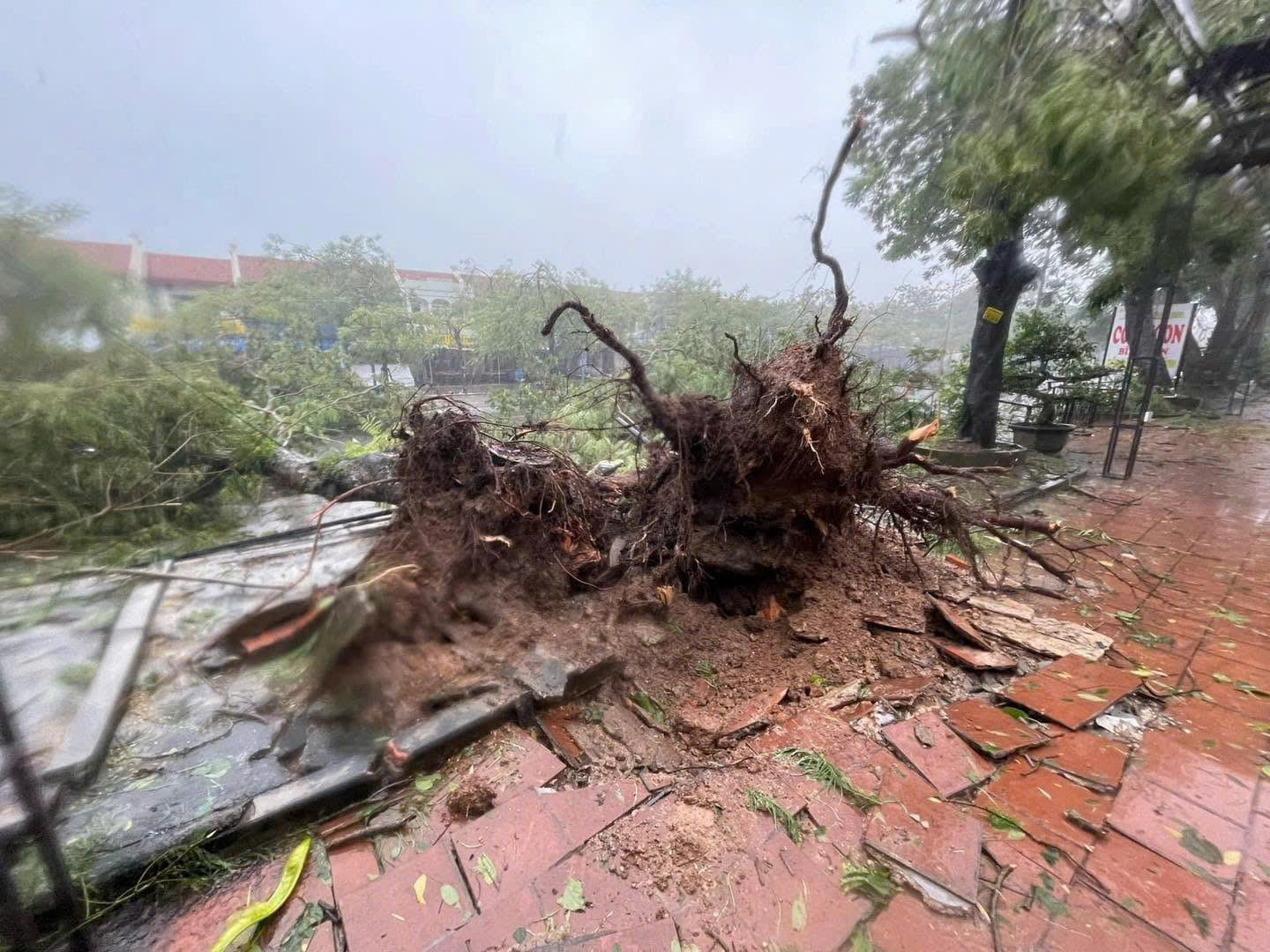 Loạt cây bật gốc do ảnh hưởng bão Yagi (Ảnh do người dân cung cấp)
